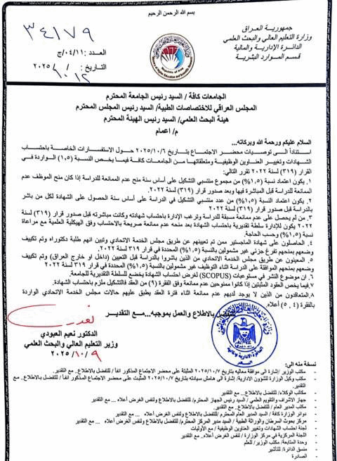 ، اليوم الاحد، قرارات جديدة بشأن احتساب الشهادات وتغيير العناوين الوظيفية.