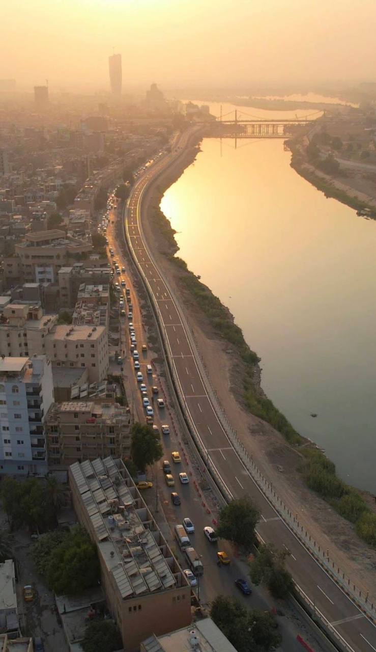 قبيل افتتاحه بساعات.. أحدث صور لمشروع توسعة شارع أبو نؤاس في بغداد