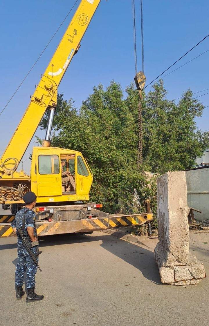 رفع الكتل الكونكريتية المحيطة بقاطع مرور الاعظمية ونقلها لخارج بغداد