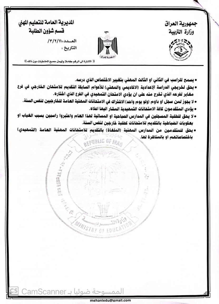 التربية تنشر ضوابط وتعليمات الاشتراك في الامتحانات التمهيدية المهنية (الخارجي)