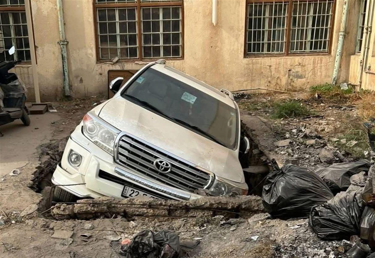 بالصورة.. الارض تبتلع لاندكروزر في الانبار