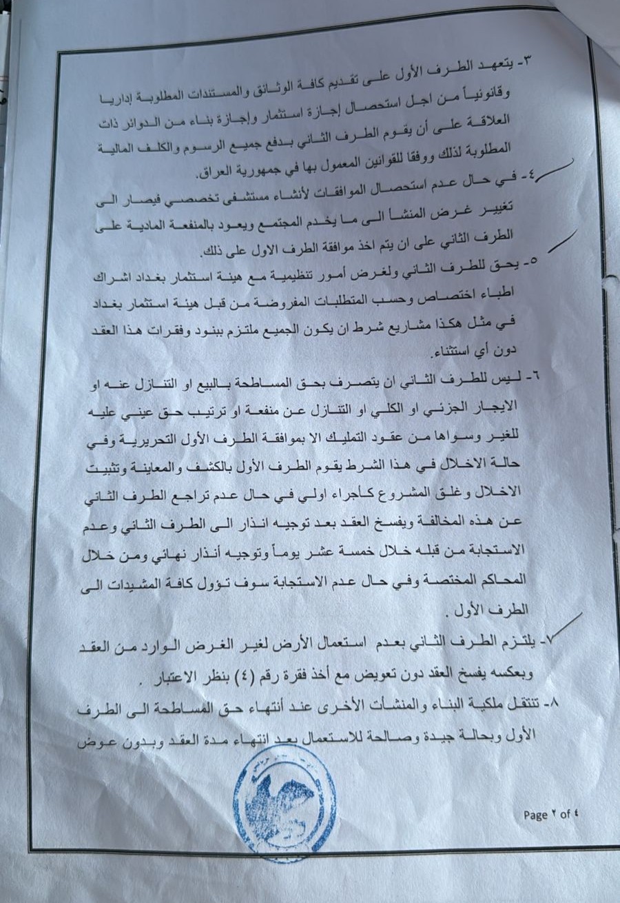 ضغوط وابتزاز تهدد مشروع إنشاء مستشفى ببغداد ومطالبات بتدخل القضاء ورئيس الوزراء (وثائق)