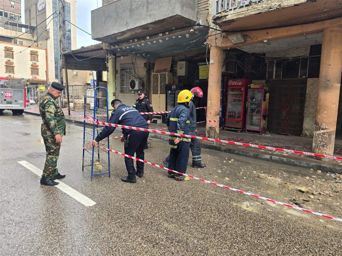 الغربية، كما قامت الفرق بوضع الأشرطة التحذيرية حول محيط البناية لتنبيه الأهالي وتجنب حصول أي مخاطر محتملة، مع الاستمرار بمتابعة الموقع لحين معالجة الخلل من قبل الجهات المختصة.
