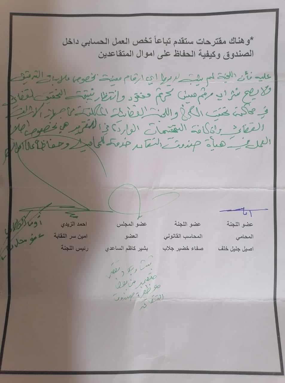 والنقابة إلى اتخاذ خطوات عاجلة لمنع تكرار مثل هذه التجاوزات وحماية حقوق المحامين التقاعدية مستقبلًا".