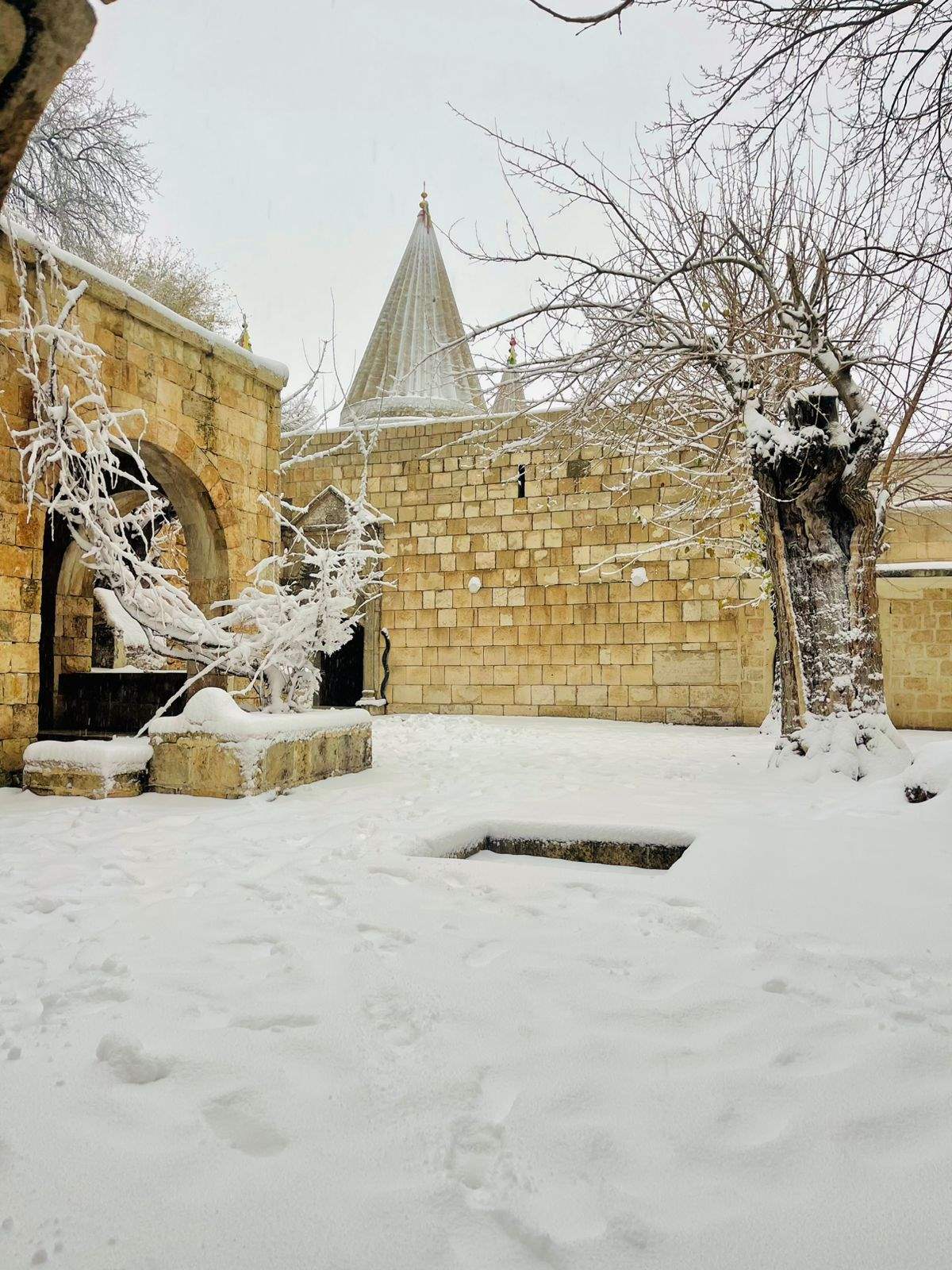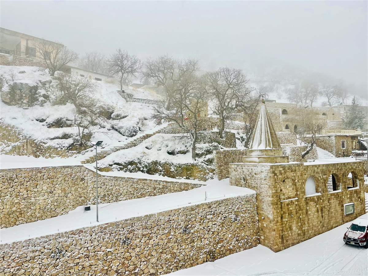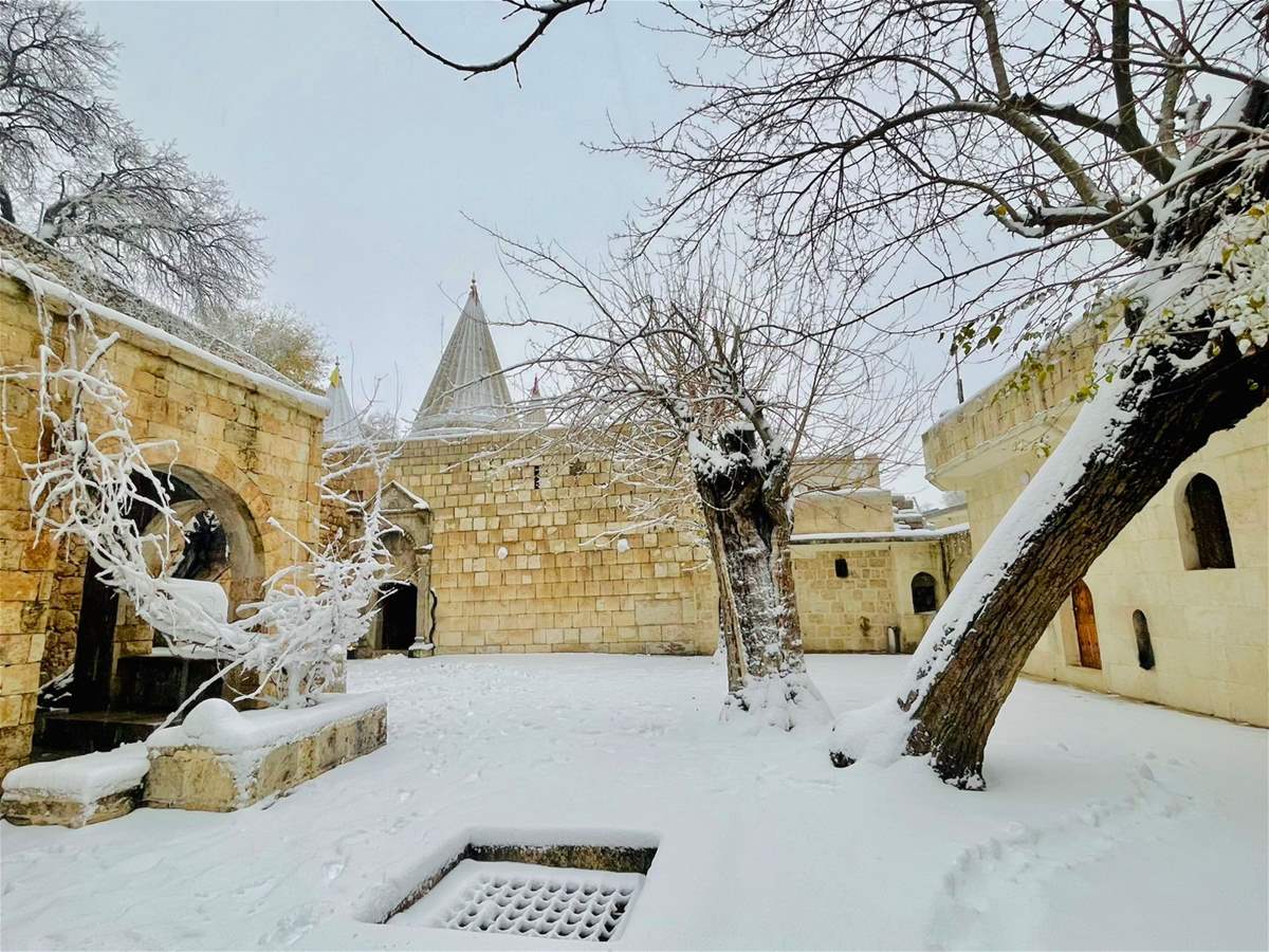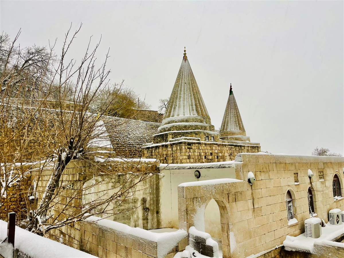 بالصور.. اقدس واكبر المعابد الايزيدية في العراق يغمر بالثلج