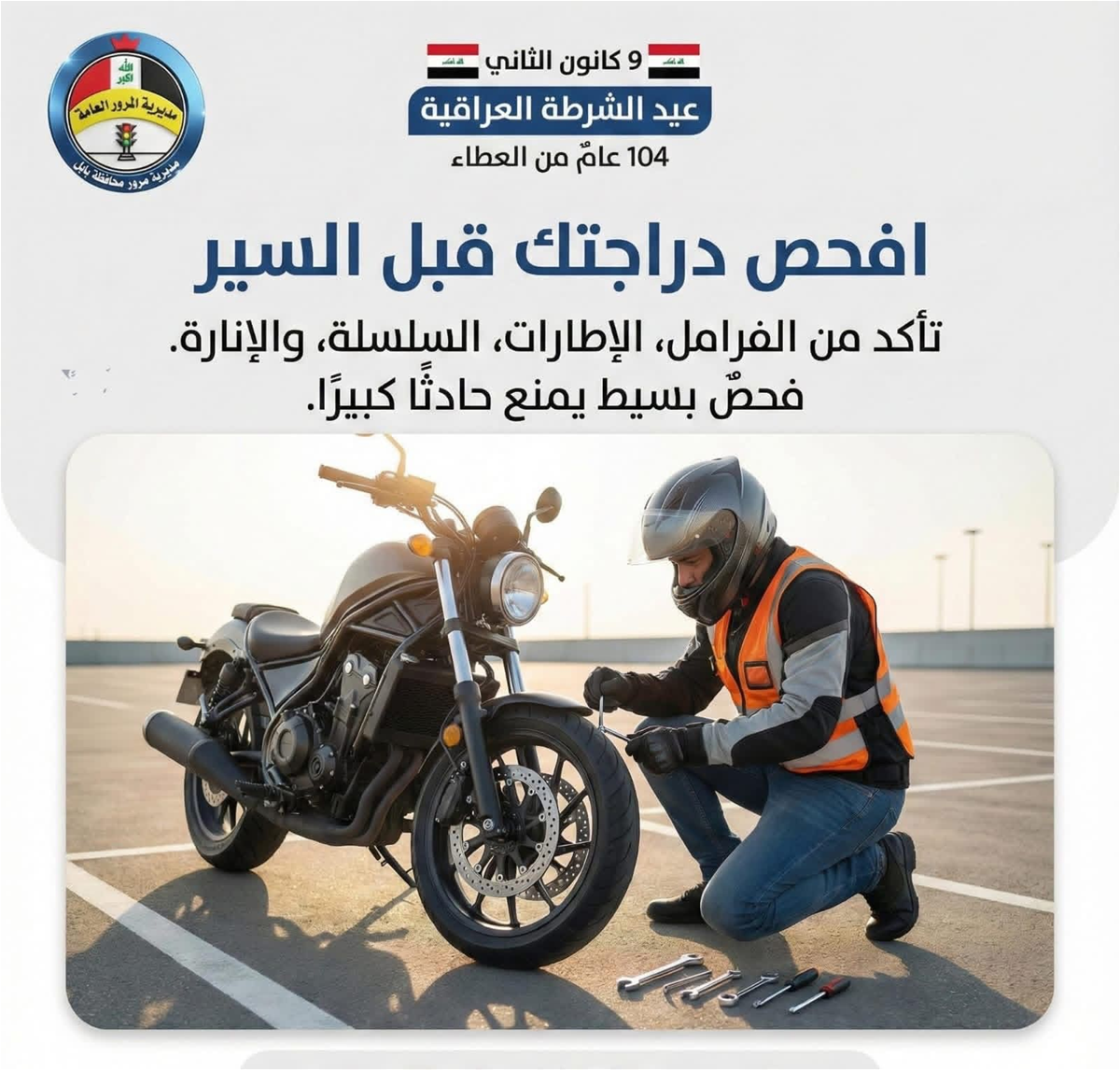 ، تحذيرات لسائقي الدراجات اثناء قيادتهم في شوارع العاصمة وباقي المحافظات العراقية.