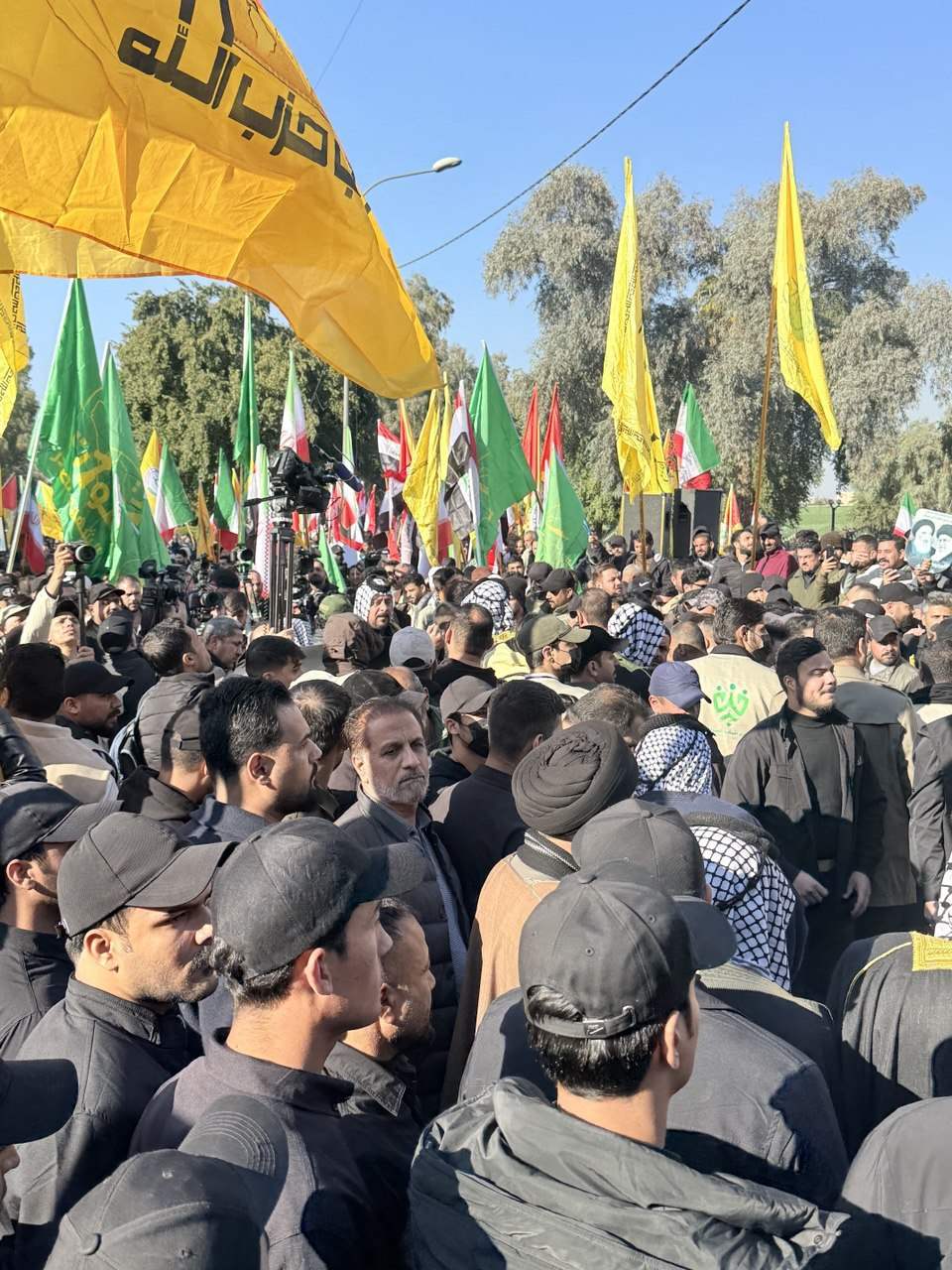نظم المئات من جمهور وفصائل المقاومة العراقية، اليوم الجمعة، وقفة تضامنية حاشدة أمام مبنى