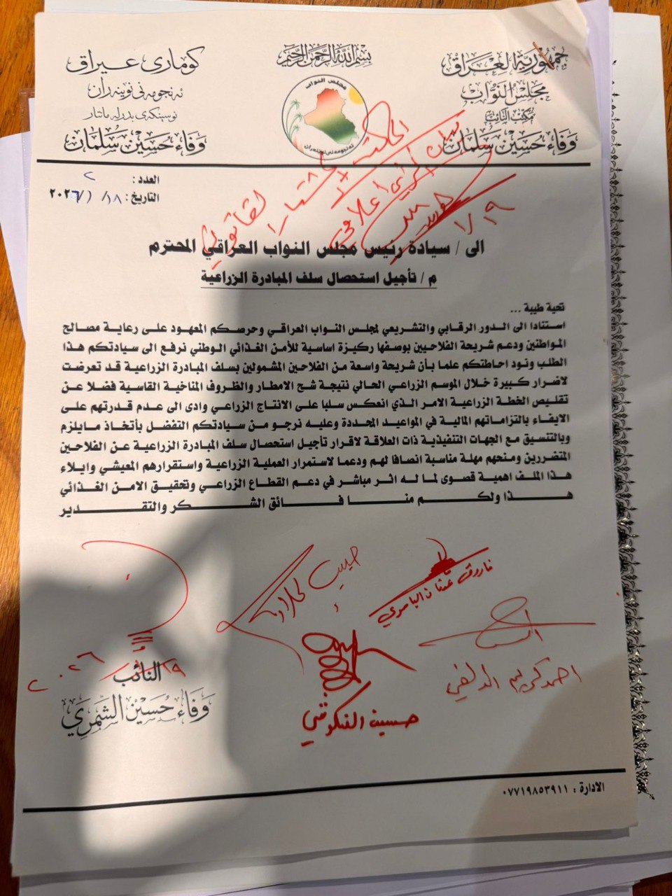 تواقيع برلمانية تطالب بتأجيل استيفاء "السلف الزراعية" (وثائق)
