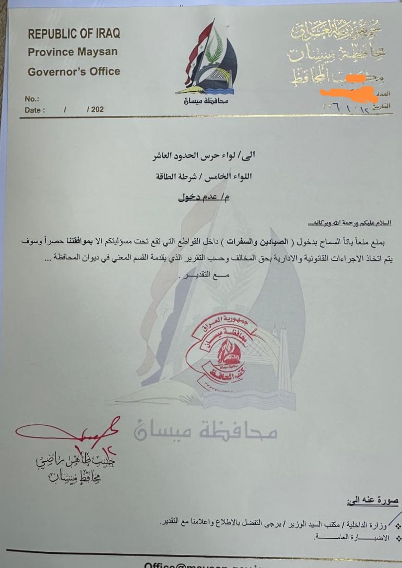 بالوثيقة.. محافظ ميسان يصدر قرارا يخص الصيادين واقامة السفرات