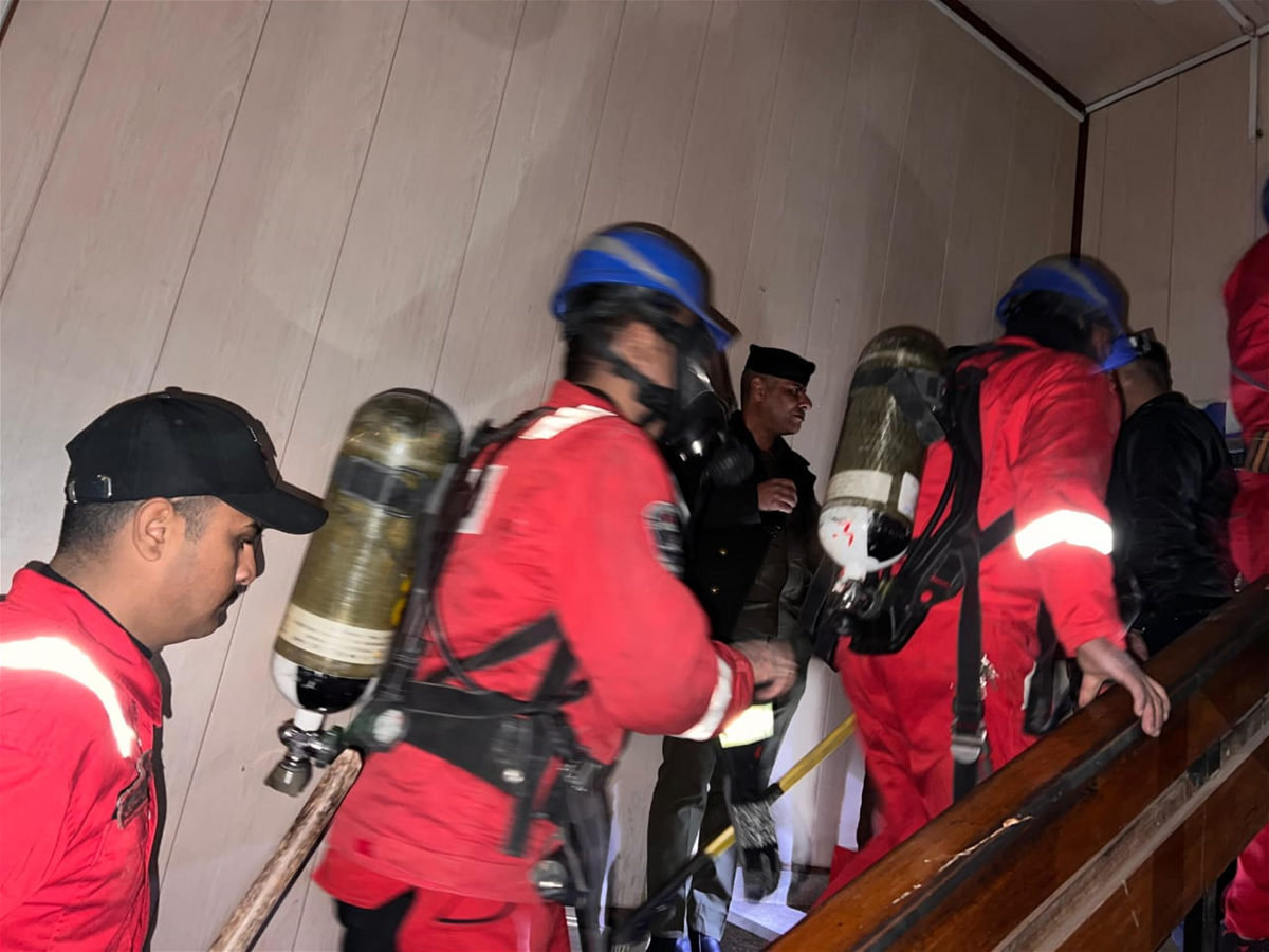 الدفاع المدني يخمد حريقا اندلع في بناية مكونة من طابقين في الوزيرية ببغداد