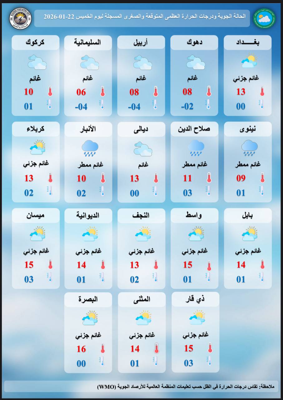 العراق على موعد مع موجة برد قاسية.. أمطار متفرقة ودرجات حرارة دون الصفر