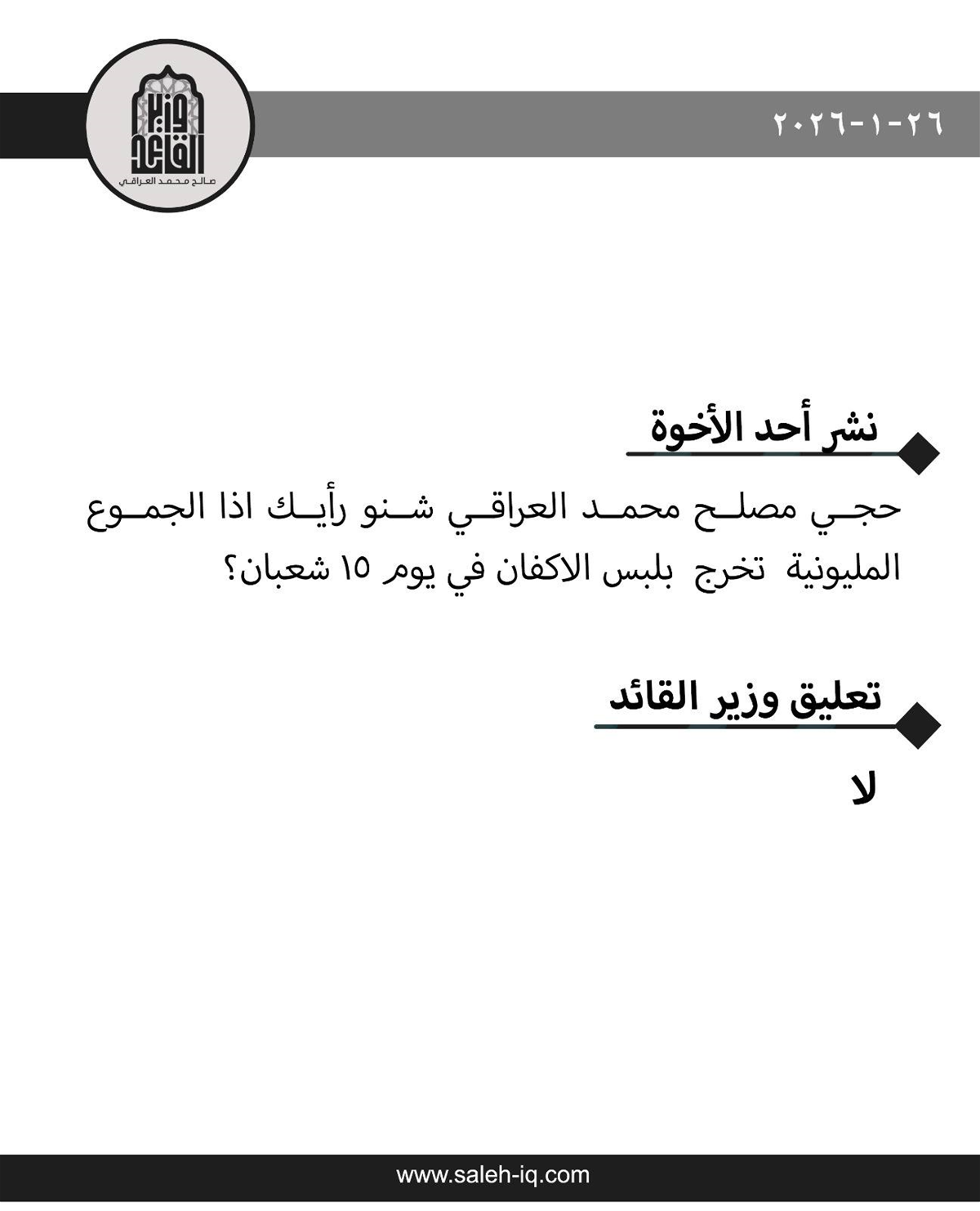 شنو رأيك إذ الجموع المليونية ترخج بلبس الأكفان في يوم 15 شعبان؟". ليجيب قائلاً: "لا".