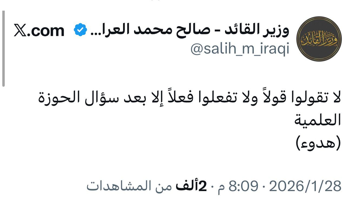 وزير السيد الصدر في تدوينة غامضة: لا تقولوا قولاً ولا تفعلوا فعلاً (هدوء)