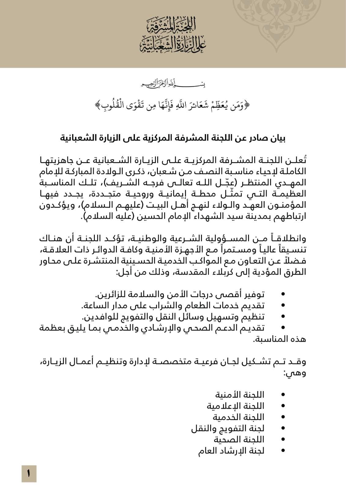 لجنة الزيارة الشعبانية تعلن جاهزيتها لإحياء المناسبة