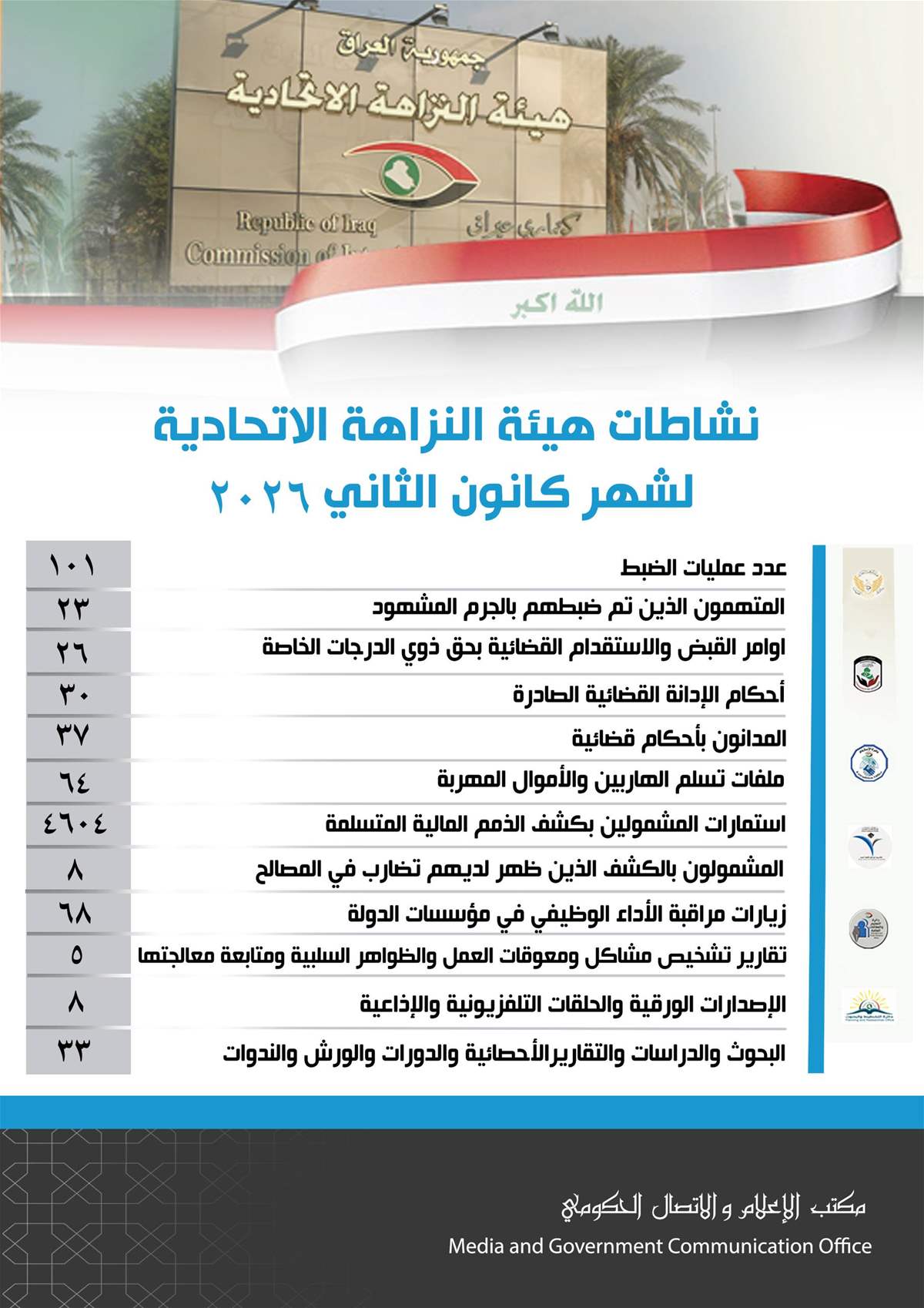 وأصدرت الهيئة بيانا بنشاطاتها خلال شهر كانون الثاني الماضي وجاء على النحو التالي:
