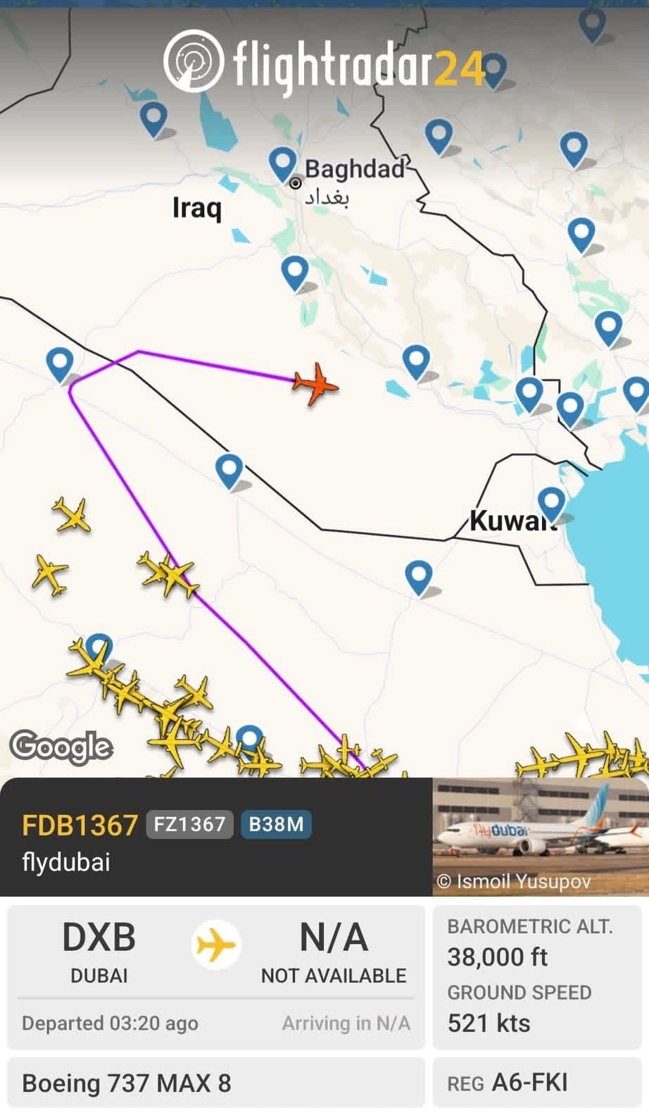 "فلاي دبي" أول طائرة تعبر الأجواء العراقية بعد انقطاع دام 40 يوماً