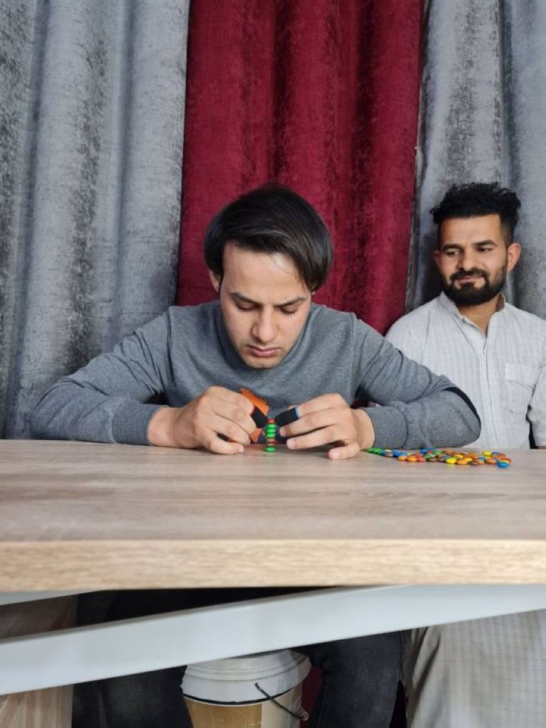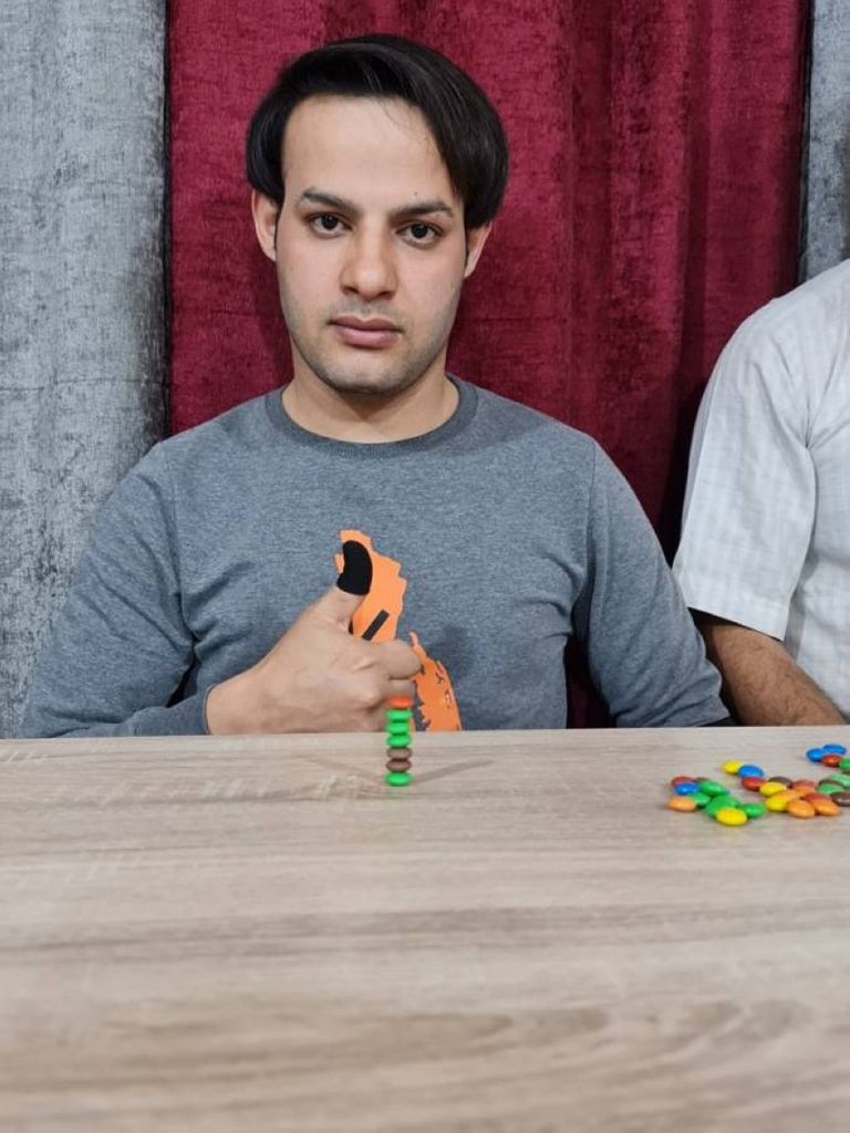 ، نجح في بناء برج من 7 حبات، متفوقاً على