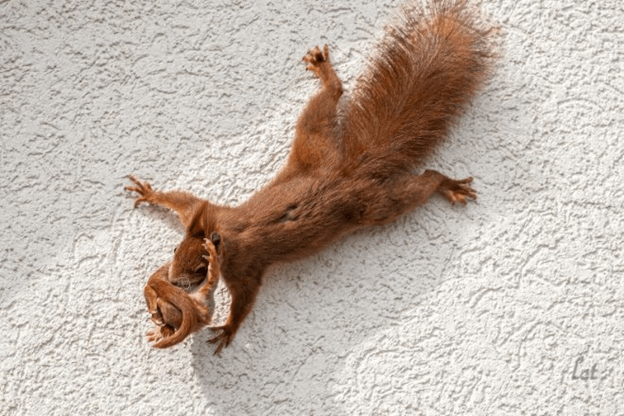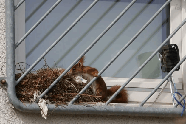 لم يخطر بباله أن عائلة من السناجب قرّرت أخذ قيلولتها في هذا المكان. في البداية، لاحظ فقط بضعة أغصان صغيرة على حافة النافذة وظن أن الريح قد هبت وجرفتها.