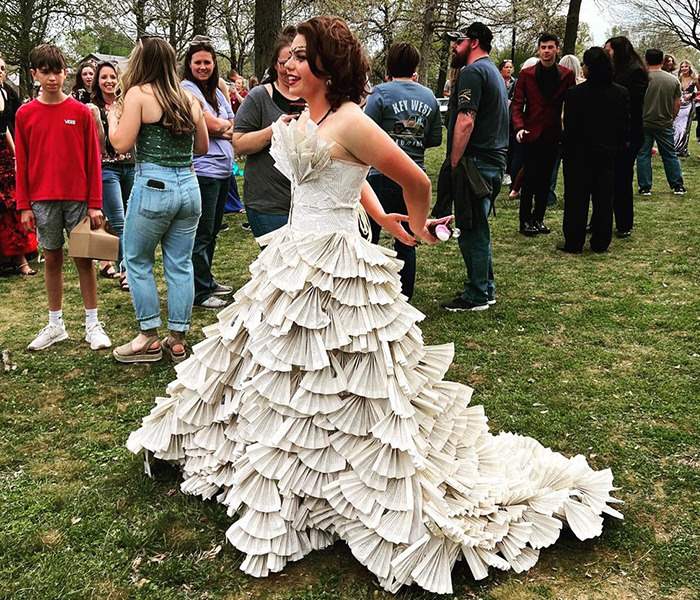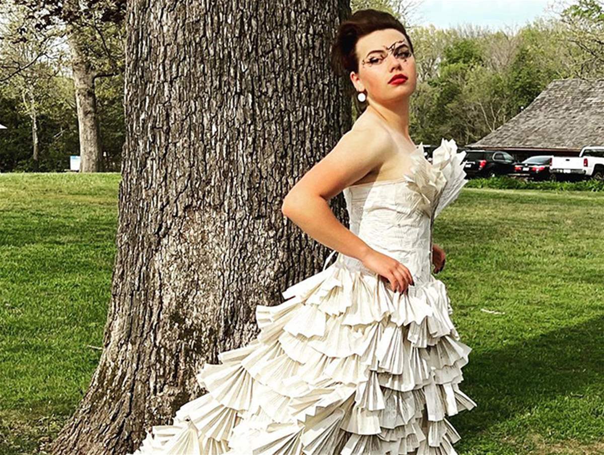 صمَّمت فتاة أمريكية فستاناً باستخدام صفحات من سلسلة "