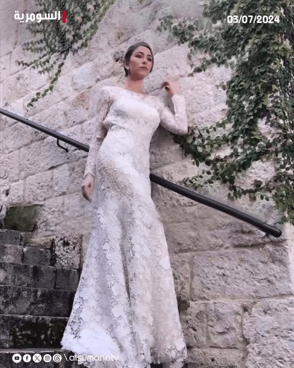 بفستان الزفاف بعد زواجها السرّي من الفنان السوري
