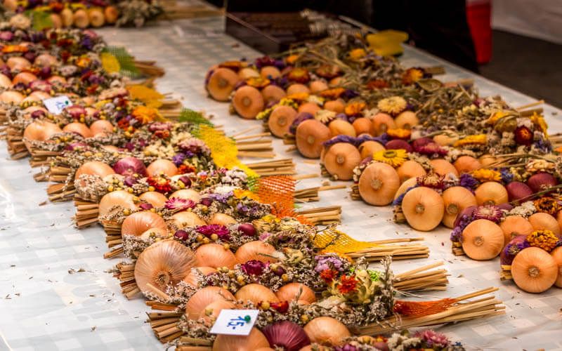 يشارك في المهرجان مزارعون ومنتجون من جميع أنحاء المنطقة لعرض وبيع ما يقرب من 50 طنًا من البصل والثوم سنويًا. ولا يقتصر العرض على البيع فحسب، بل يتحول البصل إلى أعمال فنية وزخرفية رائعة، متخذًا أشكالًا إبداعية لا تُحصى، سواء كانت ضفائر منسوجة أو باقات زخرفية أو أشكالًا صغيرة. ويتنافس المشاركون في عرض أطول ضفيرة من البصل أو