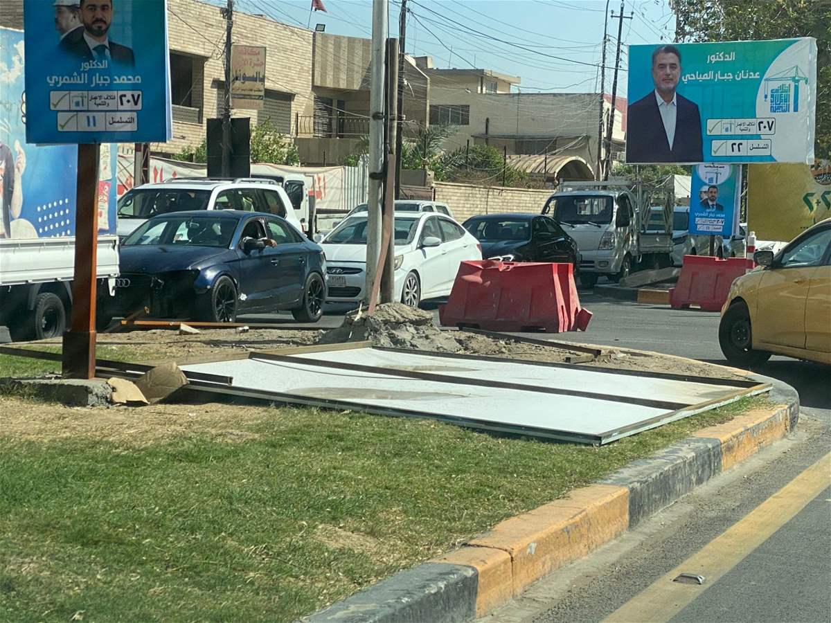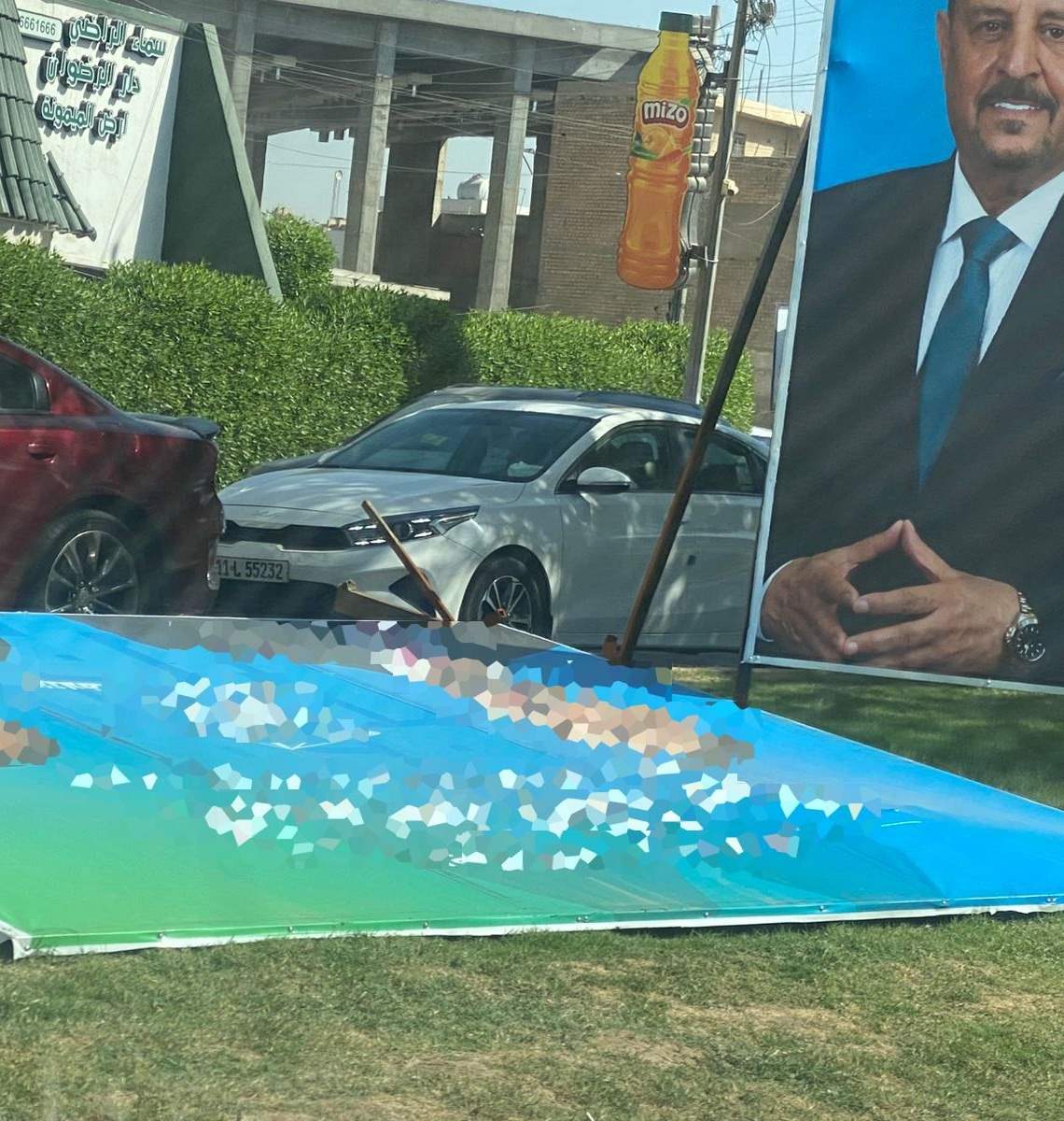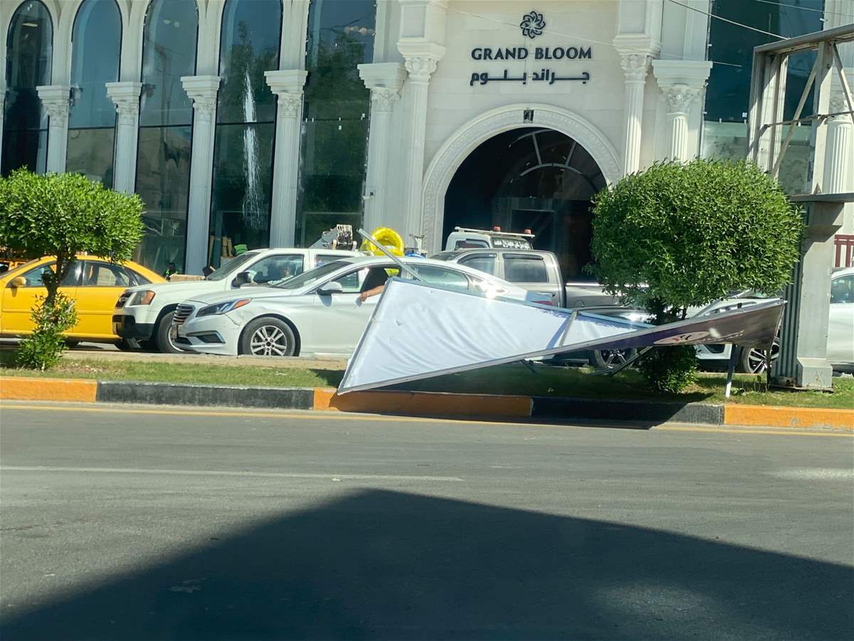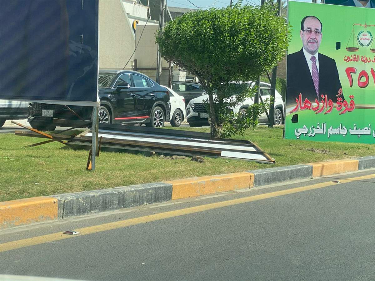 تسببت حركة رياح بسيطة بتطاير وسقوط لوحات دعائية للمرشحين الى الانتخابات في شوارع بغداد.