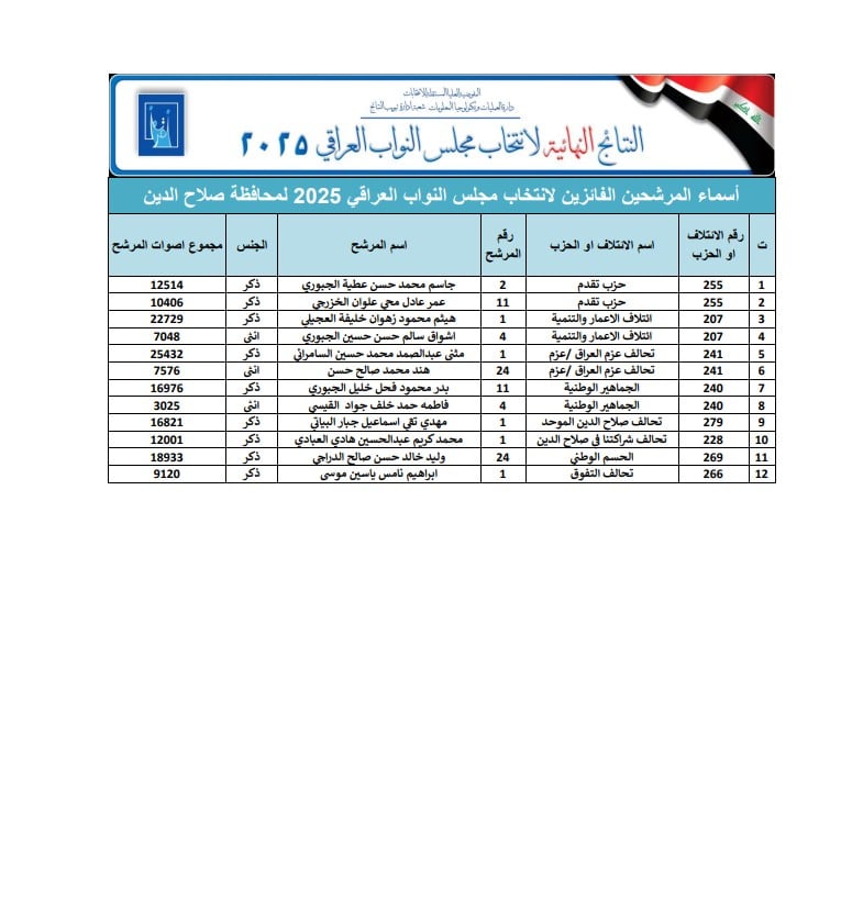 نتائج الانتخابات في صلاح الدين: تقدم أولا والاعمار والتنمية ثانيا وعزم ثالثا