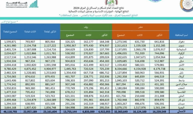 الانخفاض الأكبر بالجنوب والزيادة لكردستان.. 8 مقاعد يجب نقلها من محافظات لأخرى وفقا للتعداد السكاني