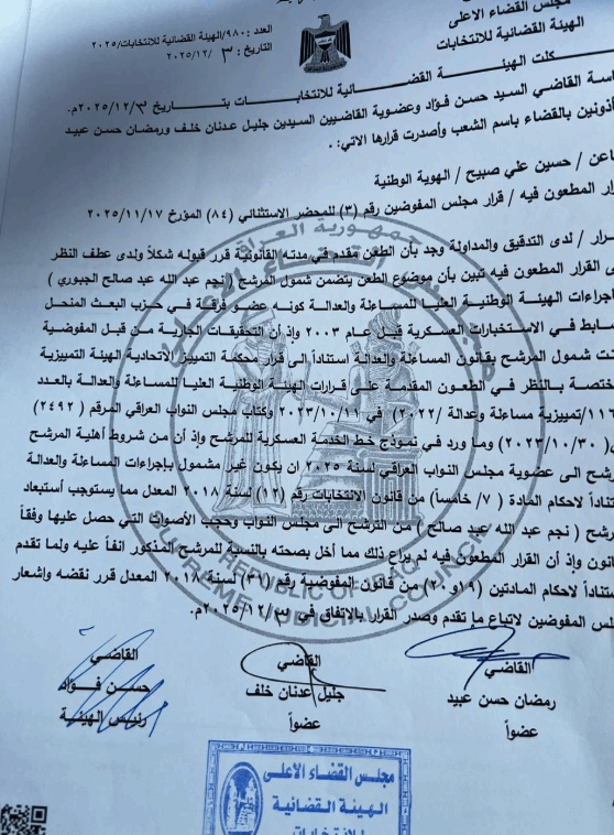 قررت الهيئة القضائية، نقض قرار مفوضية الانتخابات باعتبار