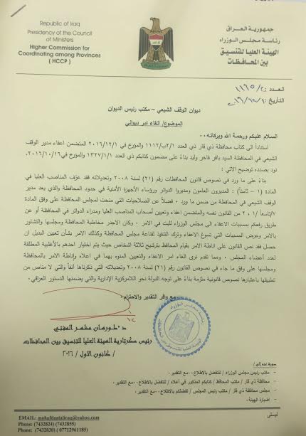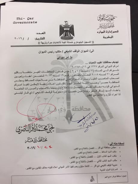 وأدناه الوثائق التي تحدث عنها المكتب الإعلامي لمحافظة ذي قار في بيانه: