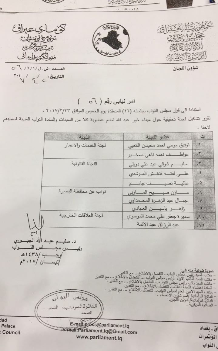بالوثيقة.. لجنة التحقيق بشأن خور عبد الله