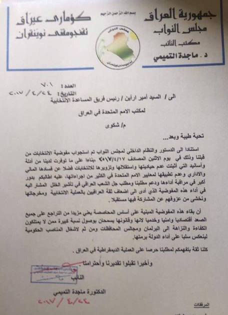 نائبة تعد مفوضية الانتخابات "فاسدة ومزورة" وتشكوها للأمم المتحدة
