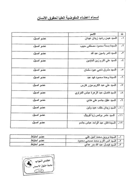 السومرية نيوز تنشر اسماء اعضاء المفوضية العليا لحقوق الانسان