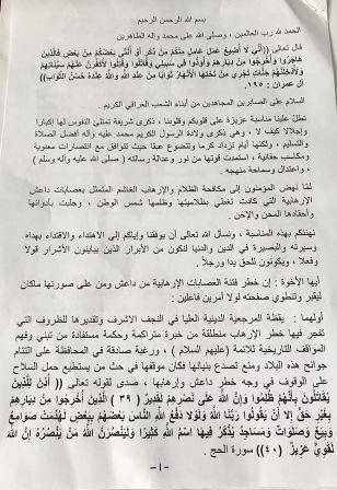 وأدناه نص البيان الصادر عن المرجع الفياض: