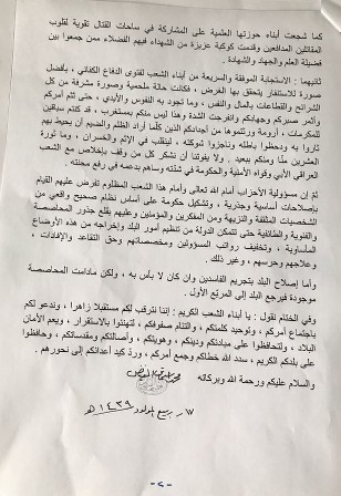 ، الأربعاء، بيانا دعا فيه إلى إجراء "إصلاحات جذرية" وتشكيل حكومة على أساس نظام صحيح وواقعي تضم أربع فئات، فيما أكد ضرورة تخفيض رواتب المسؤولين ومخصصاتهم.