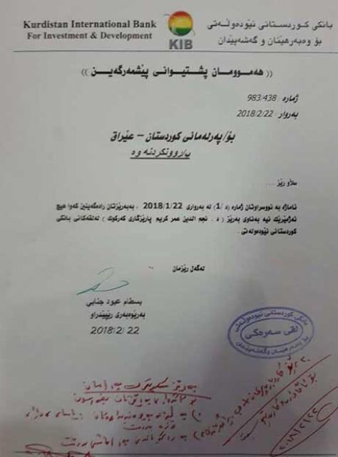 المقال سحب مبلغ 62 مليون دولار من مستحقات البترودولار، مبينة ان هذه الاموال هي من استحقاق أبناء كركوك.