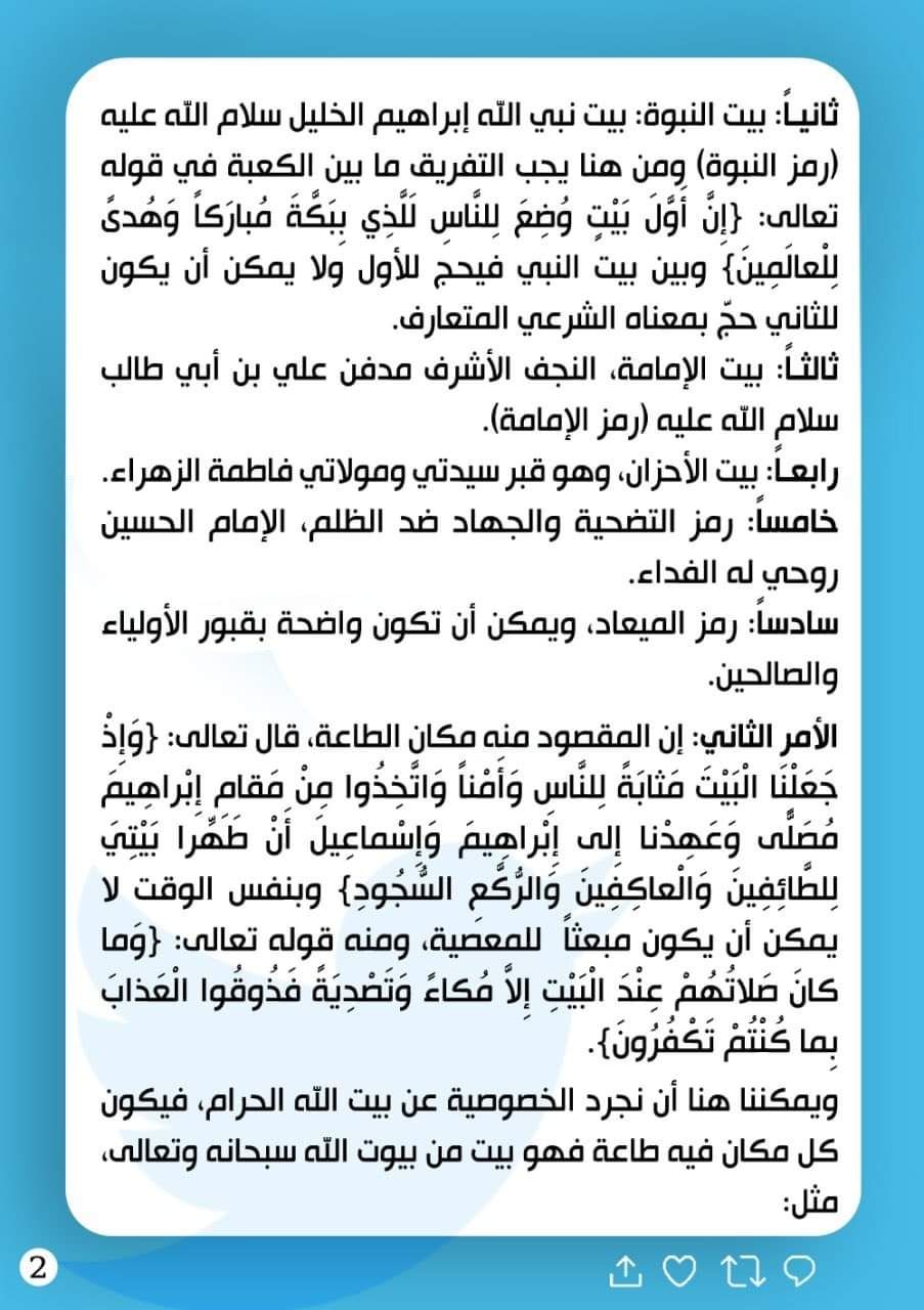 اليوم السبت في تغريدة على تويتر معنى بيت الله مستشهدا بامثلة من ضمنها بيت النبي ابراهيم عليه السلام.