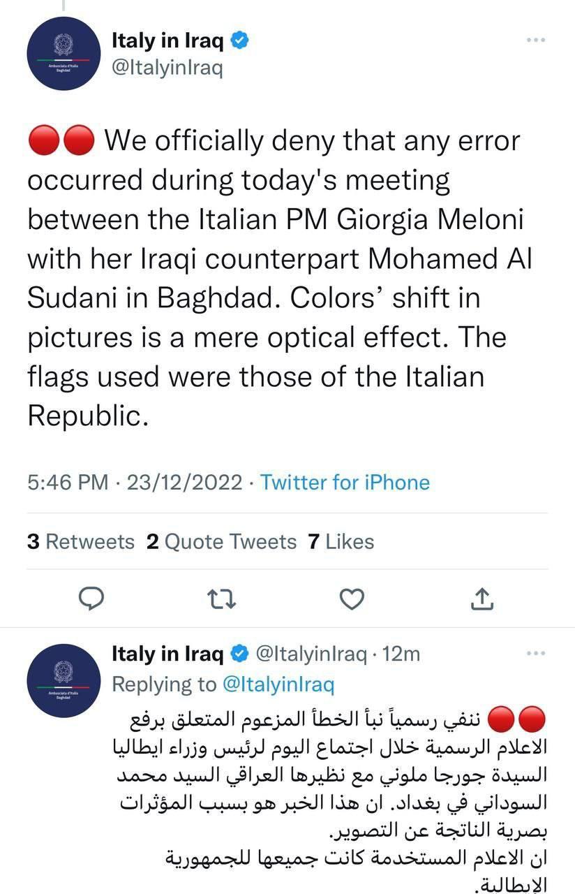 إيطاليا ترد على مزاعم رفع علم إيرلندا خلال لقاء ميلوني والسوداني