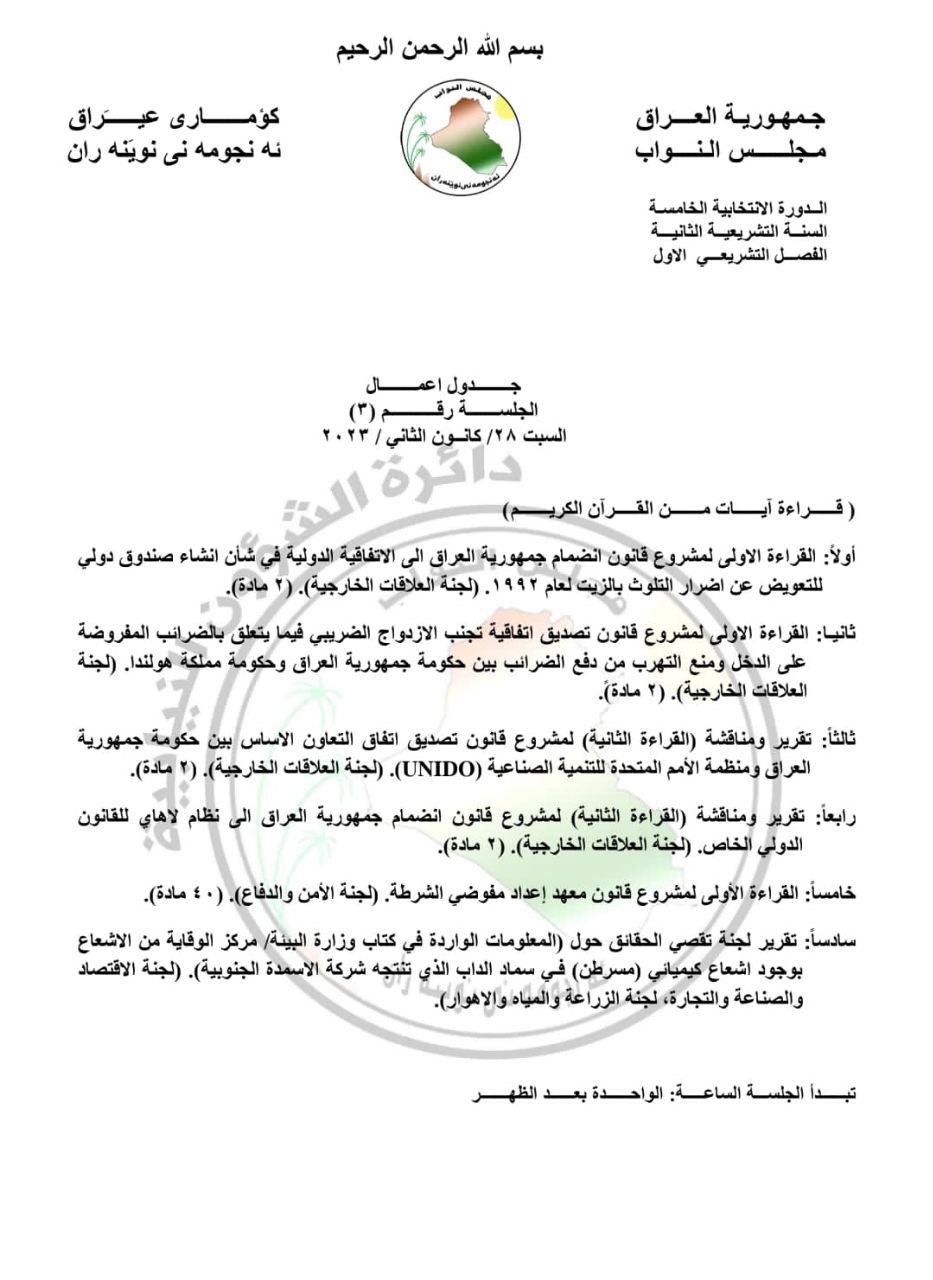 ، ان جدول اعمال جلسة يوم السبت المقبل سيتضمن: