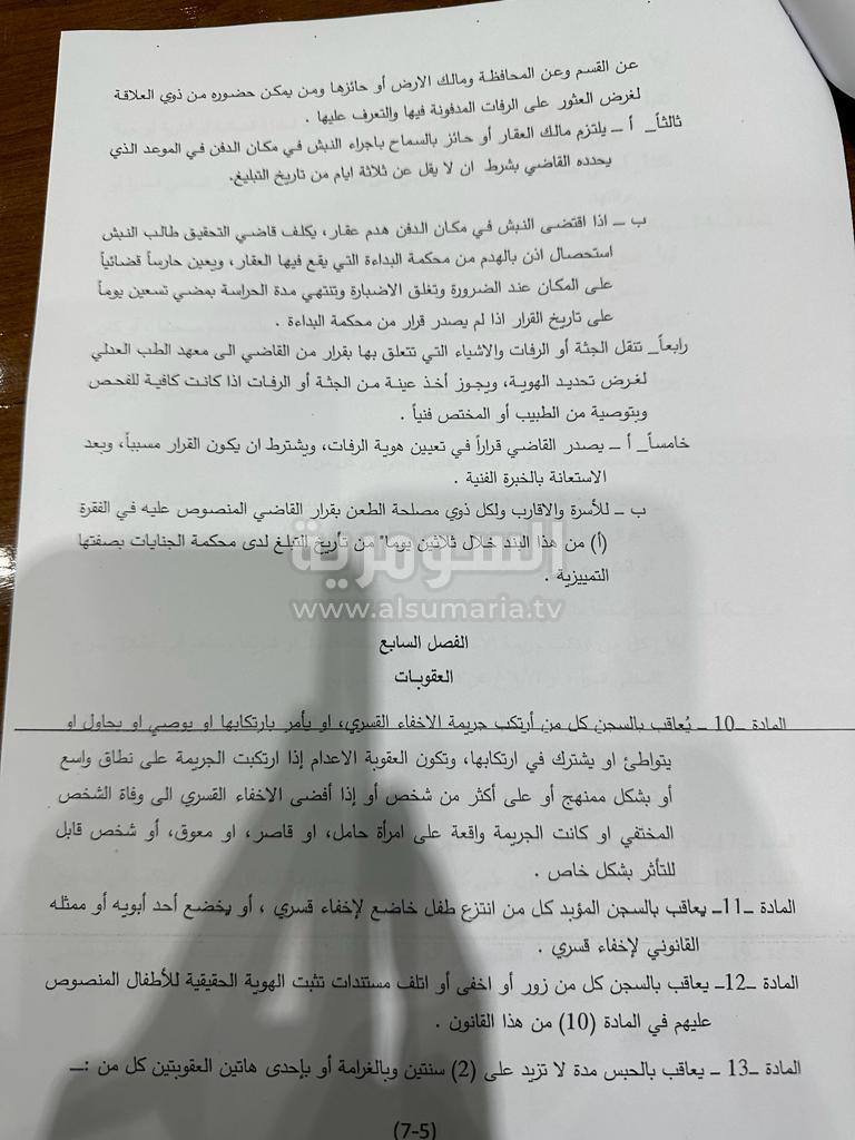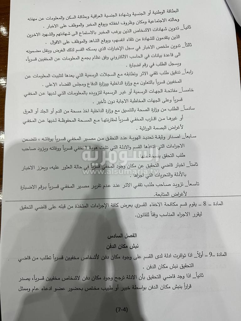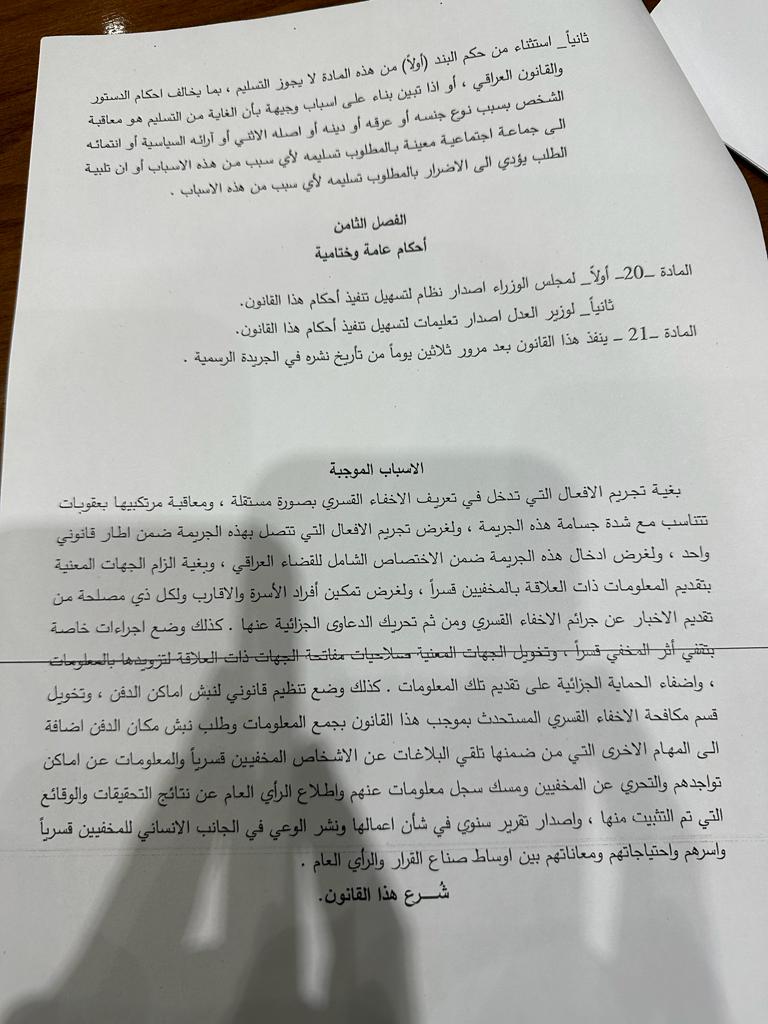 "الاختفاء القسري" على طاولة البرلمان لإنضاجه.. السومرية تنفرد بنشر مسودة القانون (وثائق)