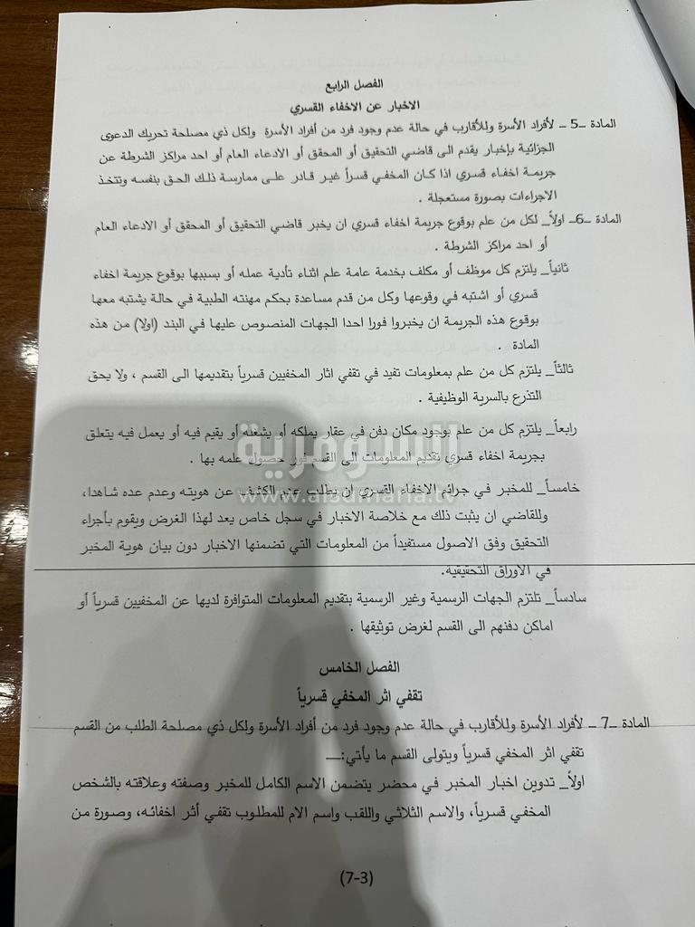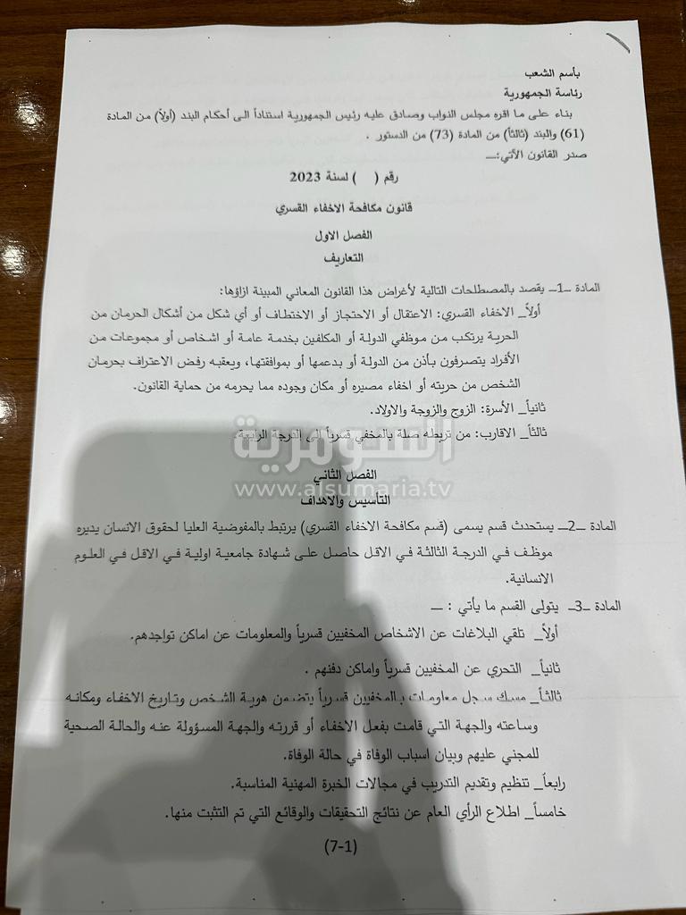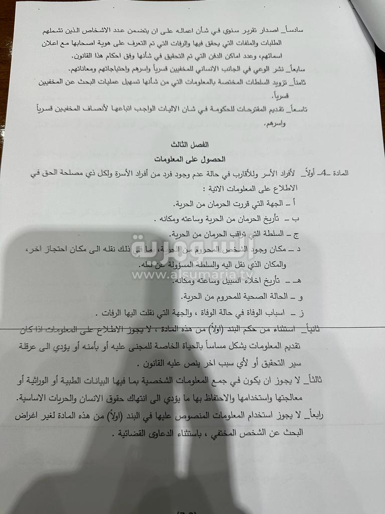 مكافحة الاختفاء القسري، فيما بينت مضامين المسودة.