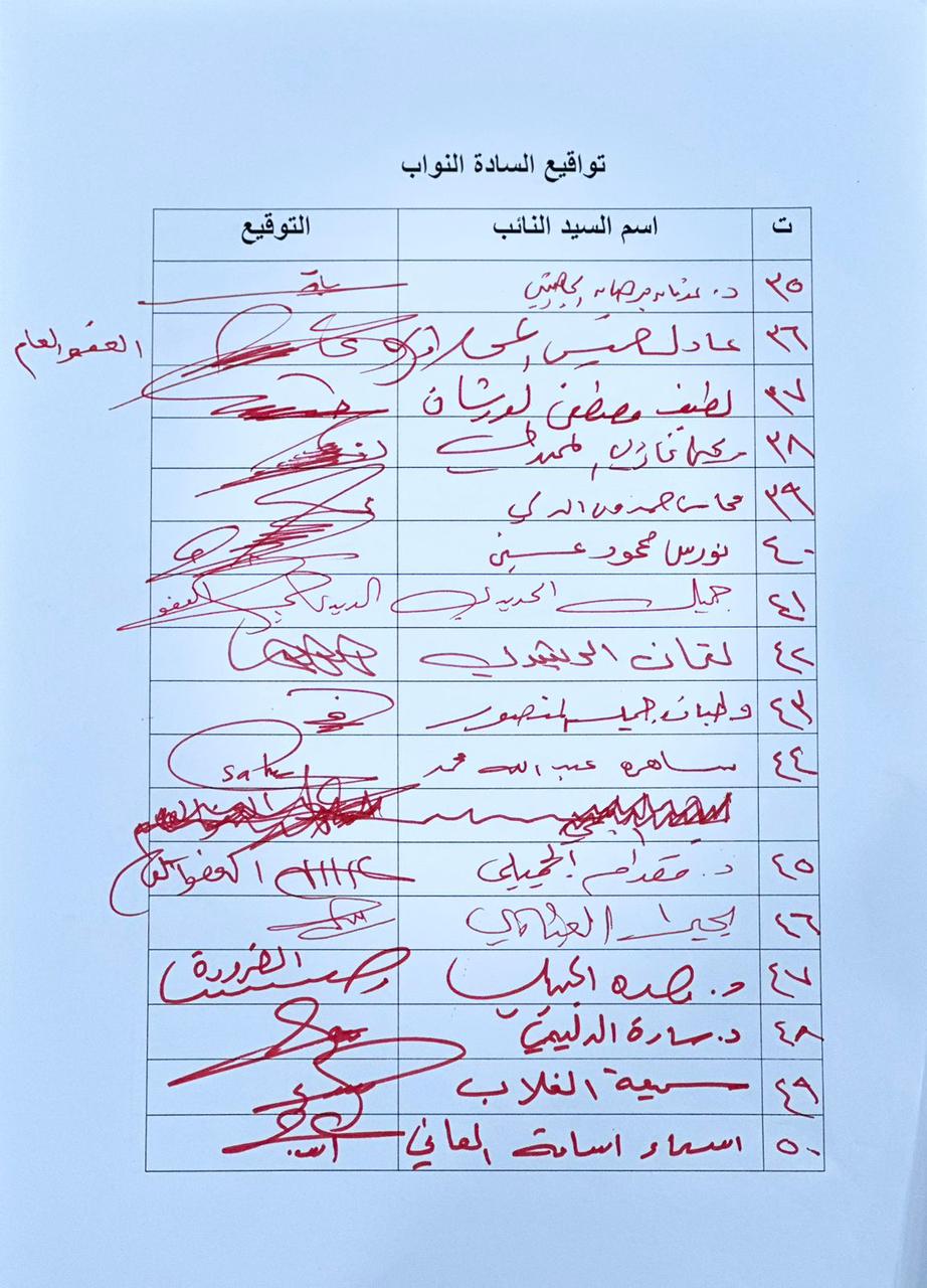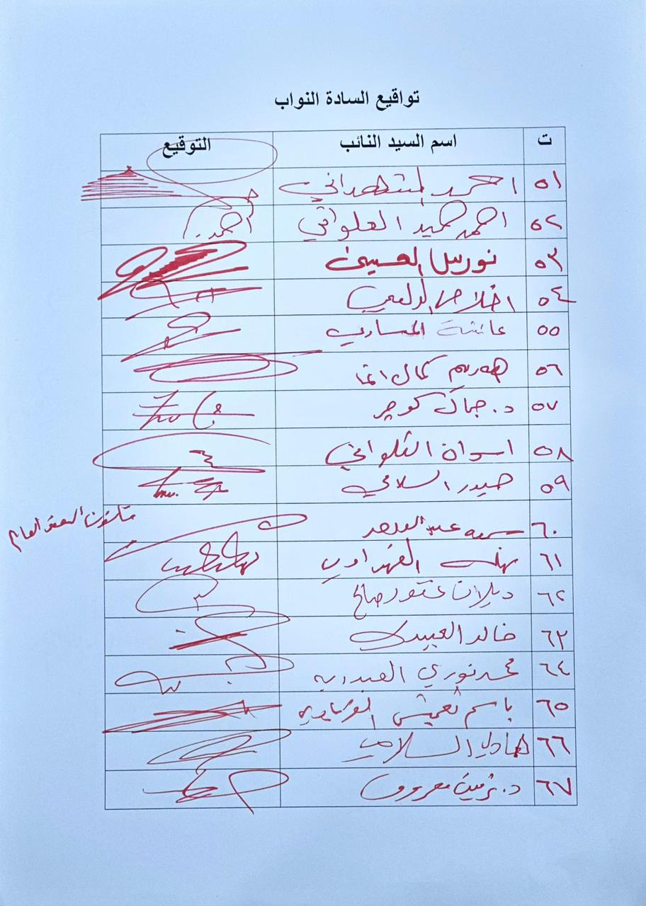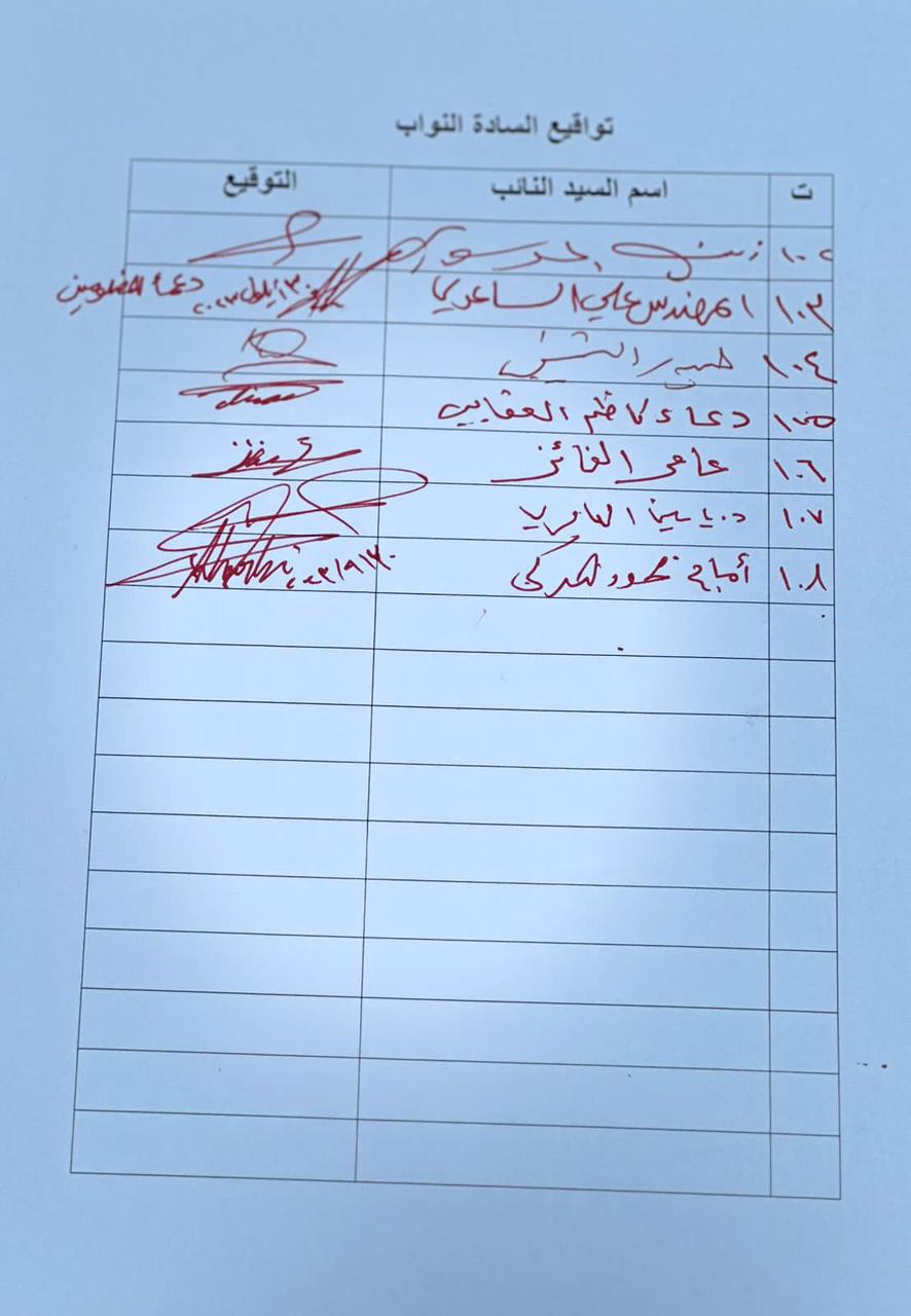 على وثائق تضمنت تواقيع لعدد من النواب لإدراج