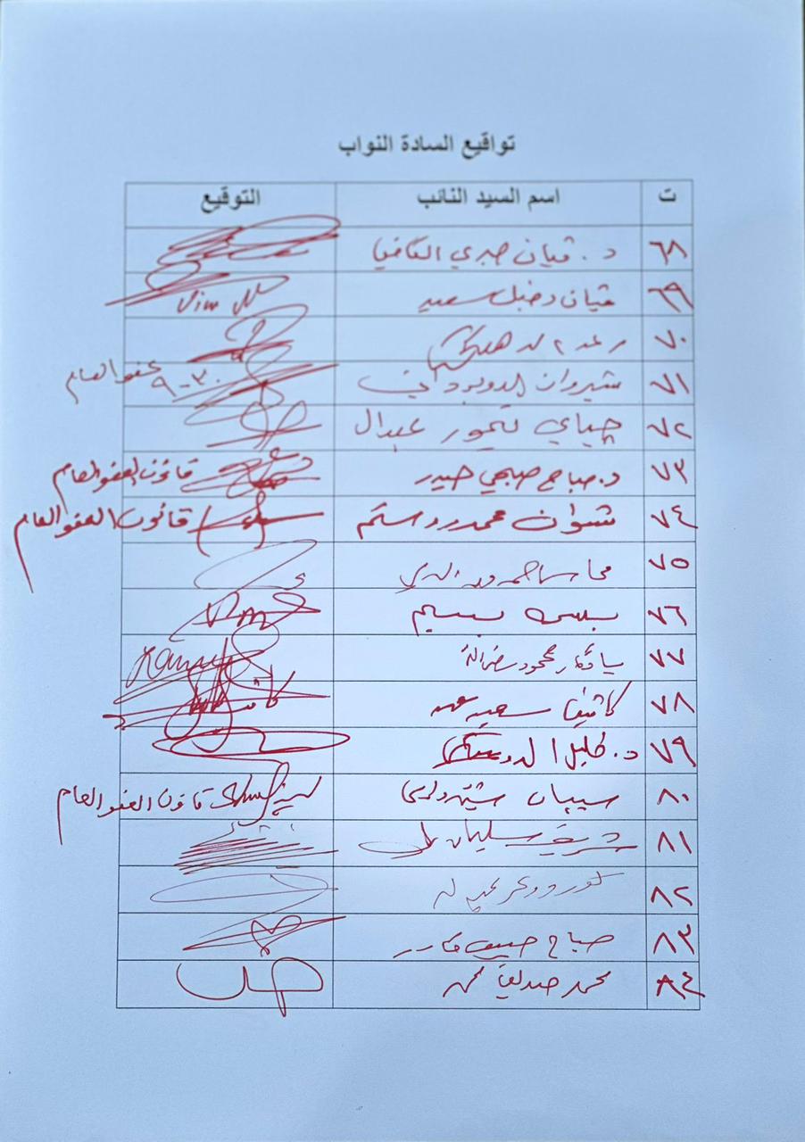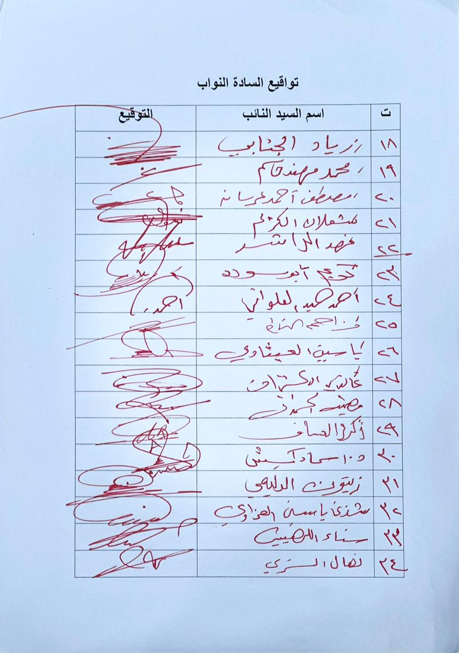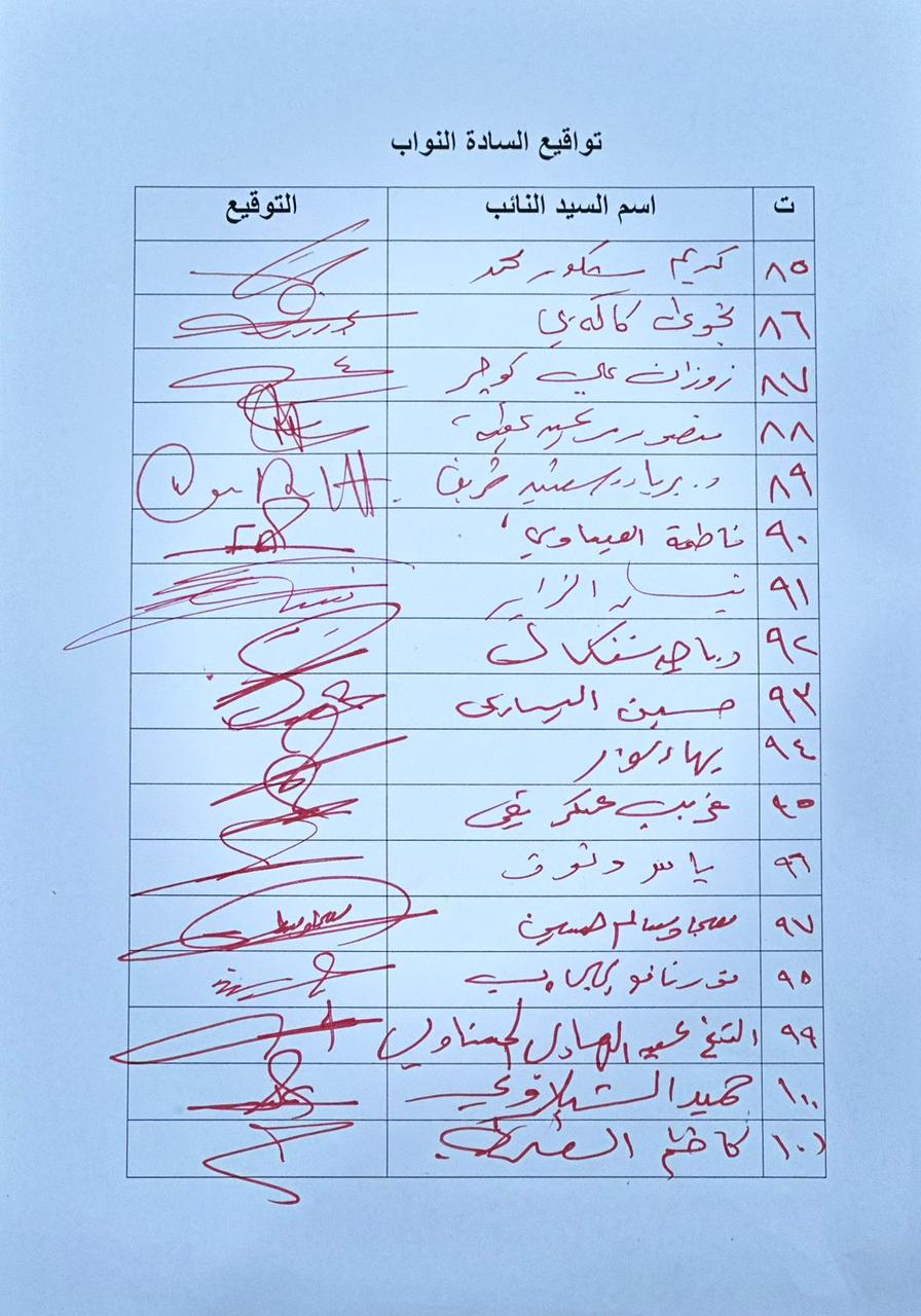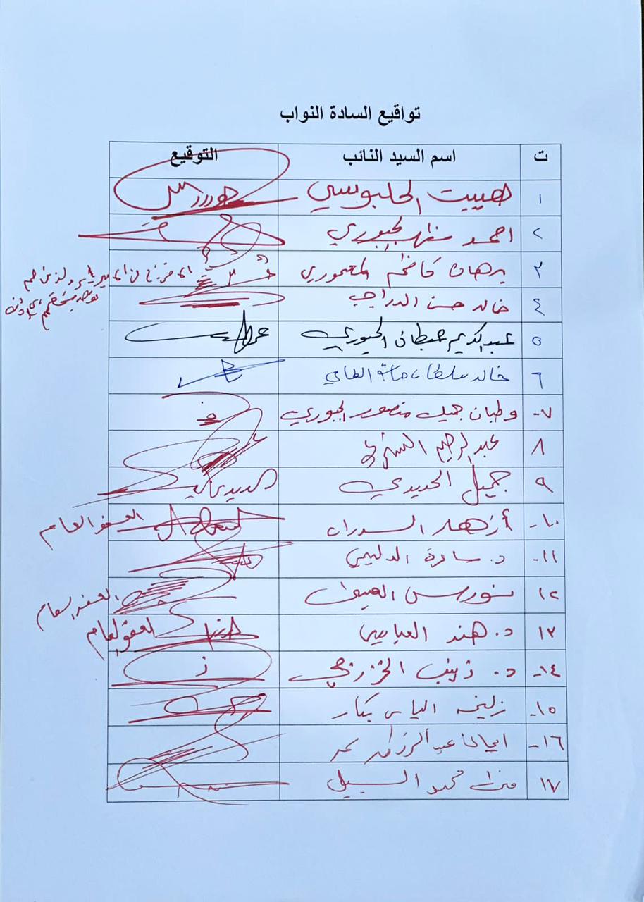 على وثائق تضمنت تواقيع لعدد من النواب لإدراج