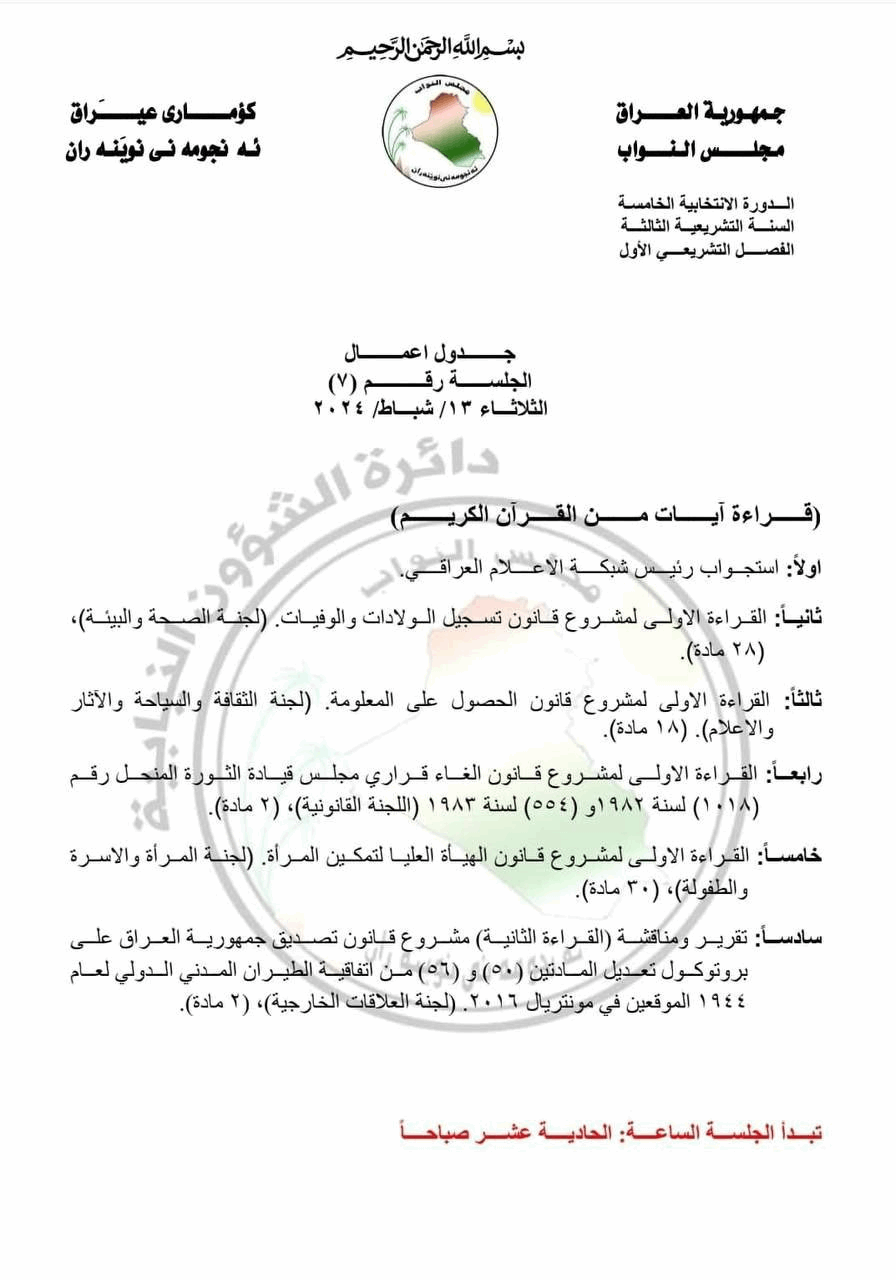 وكانت على جدول أعمال البرلمان خمس فقرات غير فقرة استجواب رئيس شبكة الإعلام العراقي، لكن لم يتم التطرق إليها وربما أجلت إلى جلسات مقبلة.