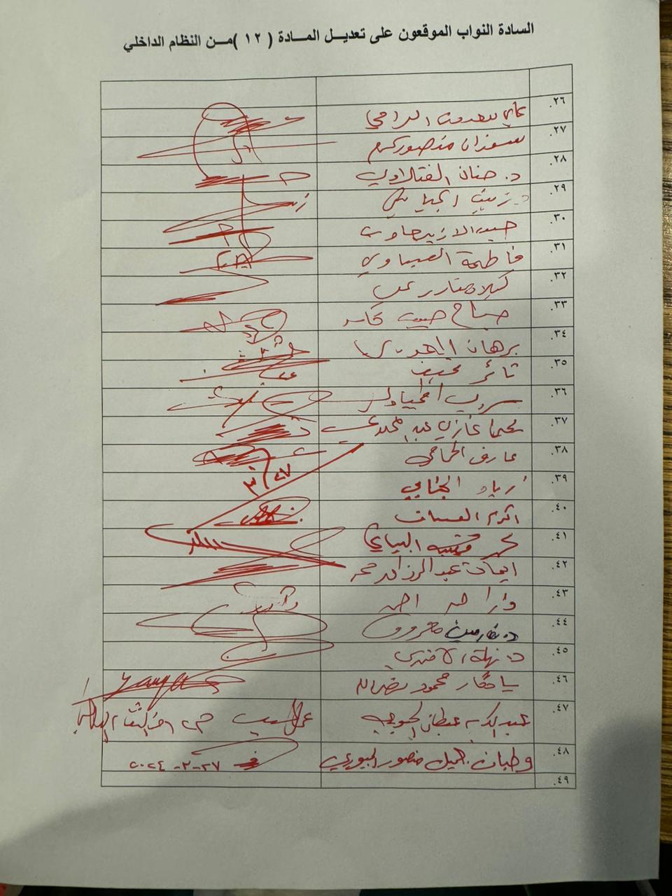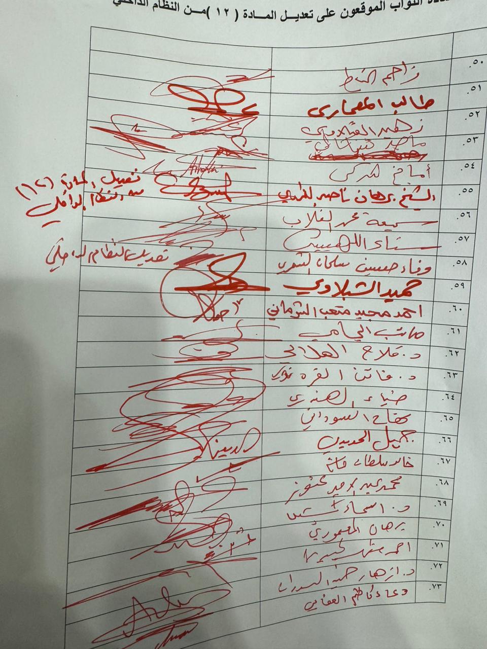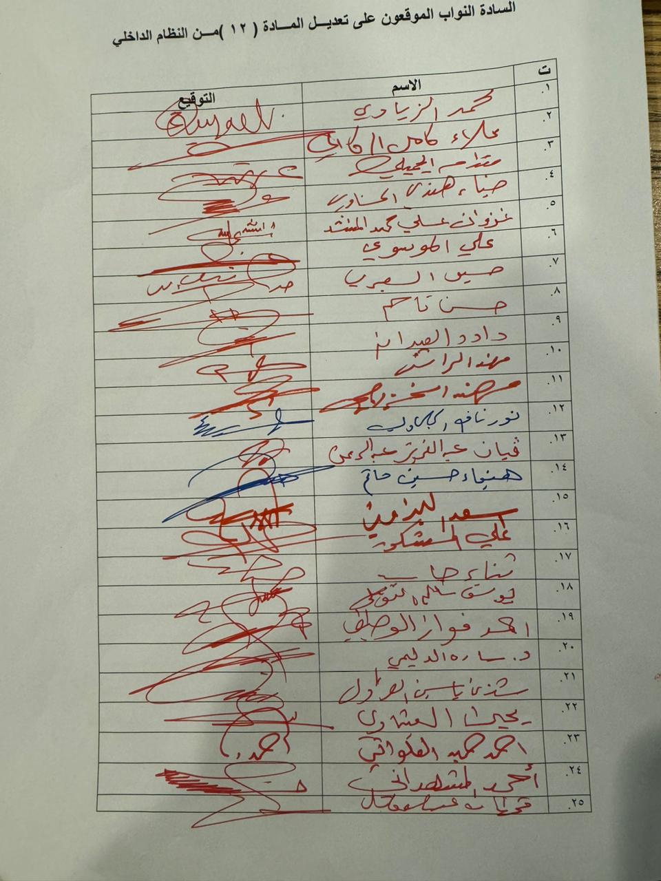 ، وثائق تتضمن تواقيع برلمانية لإدراج تعديل النظام الداخلي لحسم اختيار