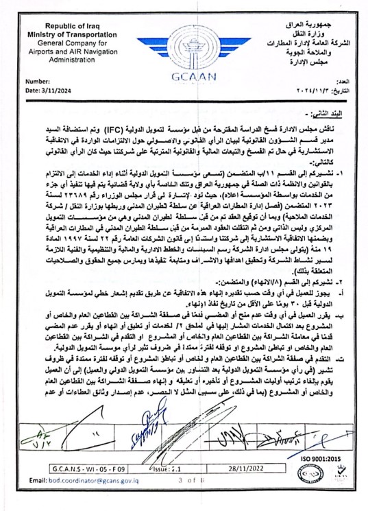 النقل تقرر رفض الشراكة بين الشركة العامة لإدارة المطارات والقطاع الخاص (وثائق)