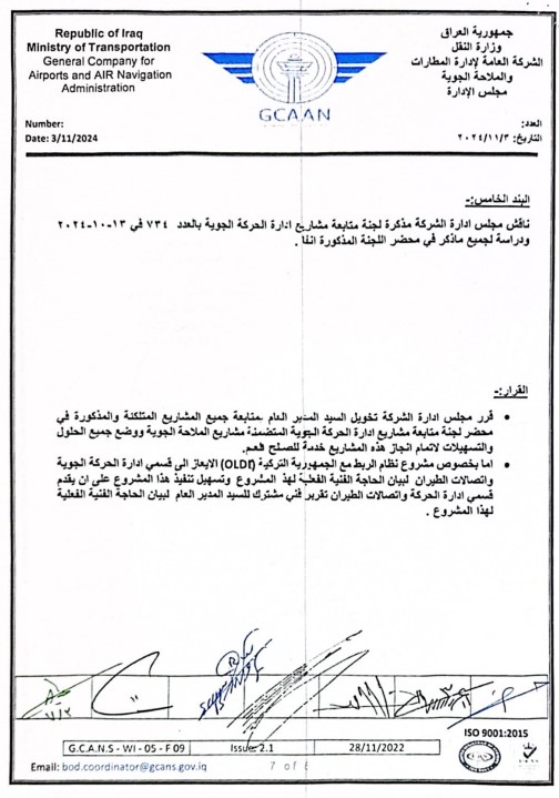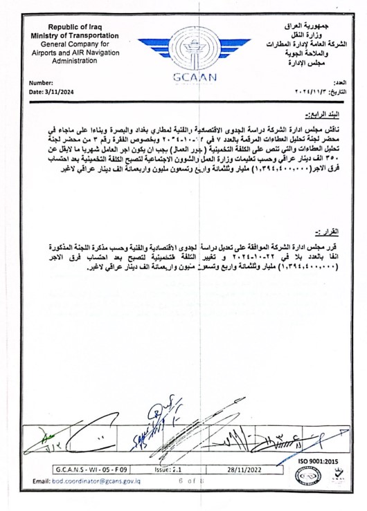 لإدارة المطارات والمحلاة الجوية والقطاع الخاص، عازية ذلك الى موافقتها المسبقة على حزمة كبيرة من مشاريع التأهيل والتطوير للنهوض بواقع البنى التحتية للمطارات والملاحة الجوية من الموازنات الاستثمارية.