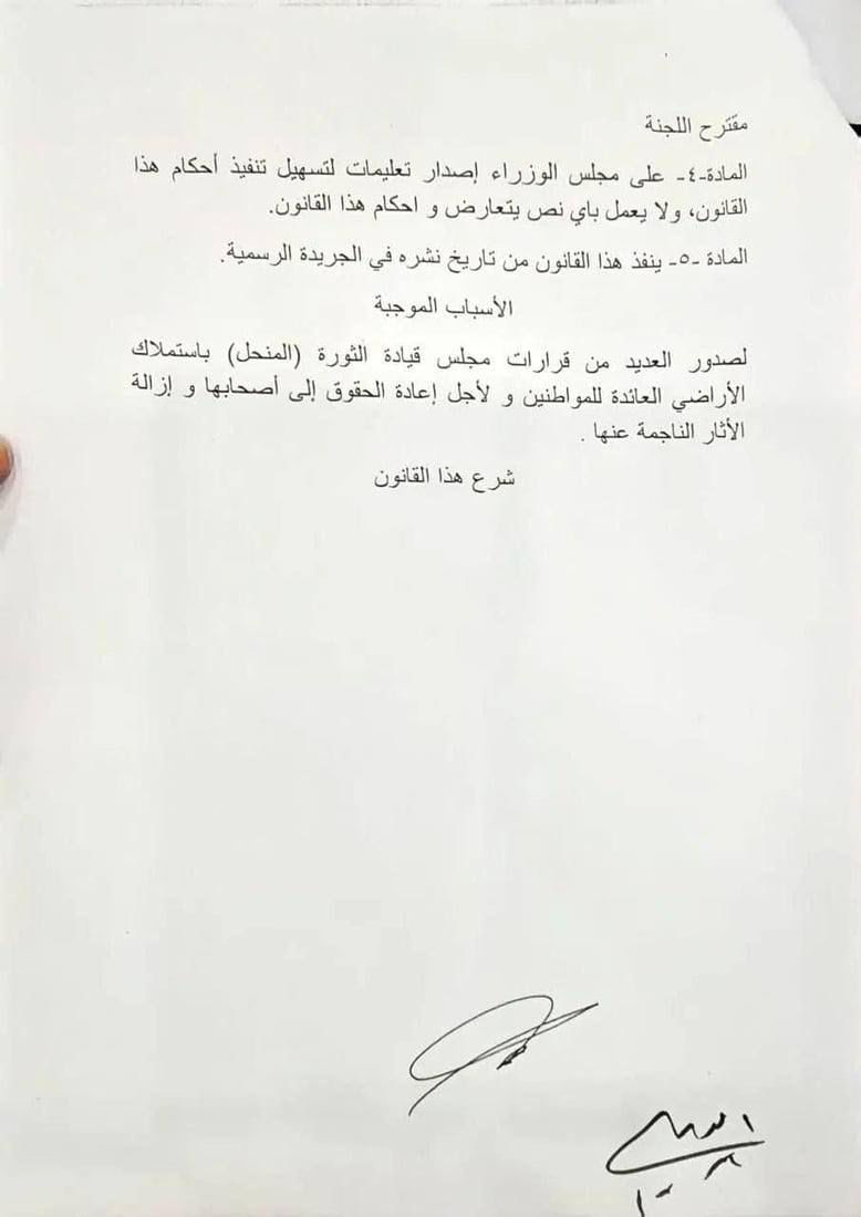 نيوز، نص قانون إعادة العقارات لاصحابها والذي كان من المقرر التصويت عليه في جلسة
