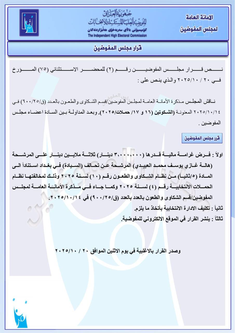 غرامات مالية واستبعادات.. مفوضية الانتخابات تصدر قرارات جديدة