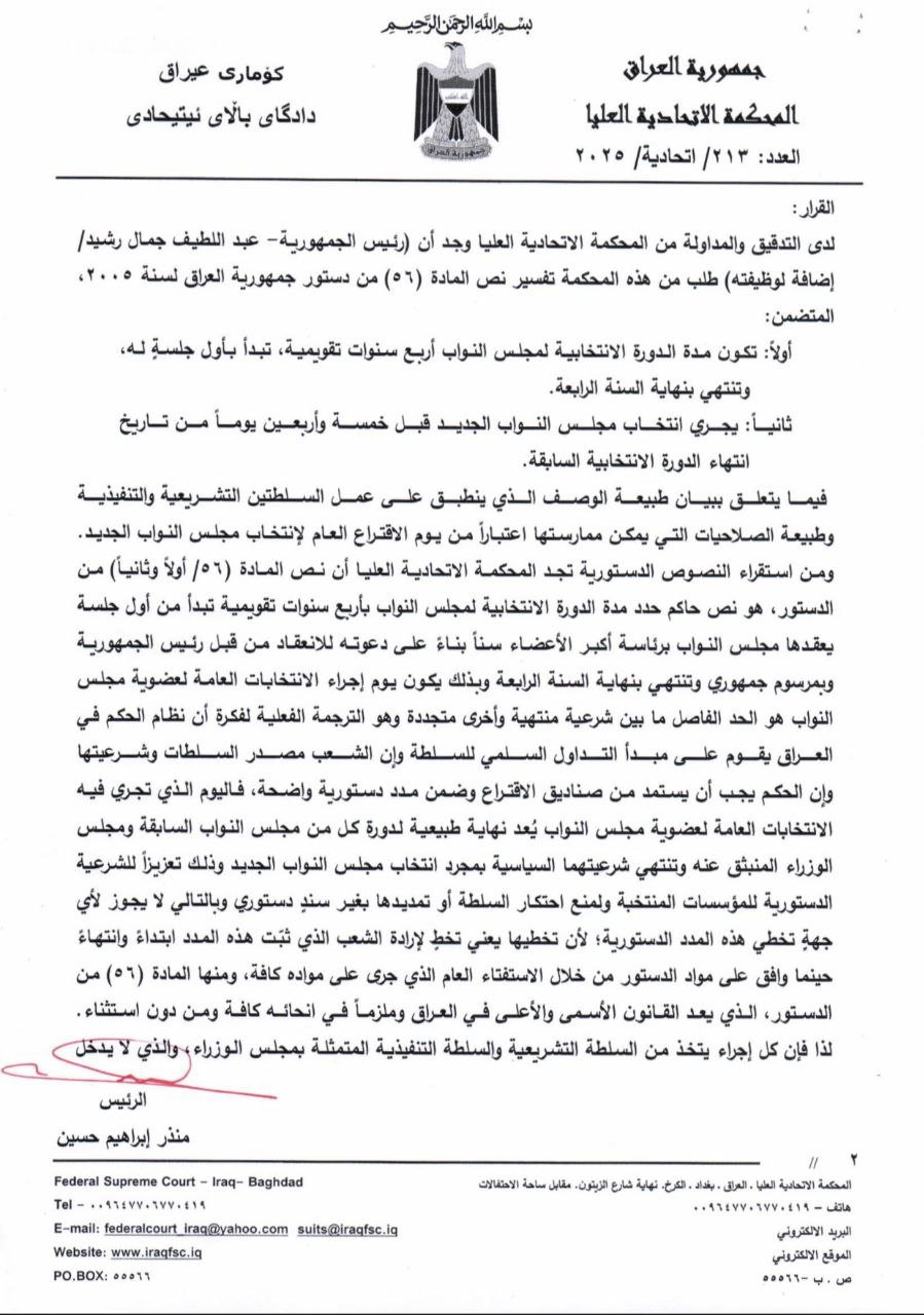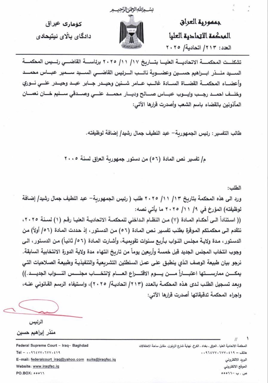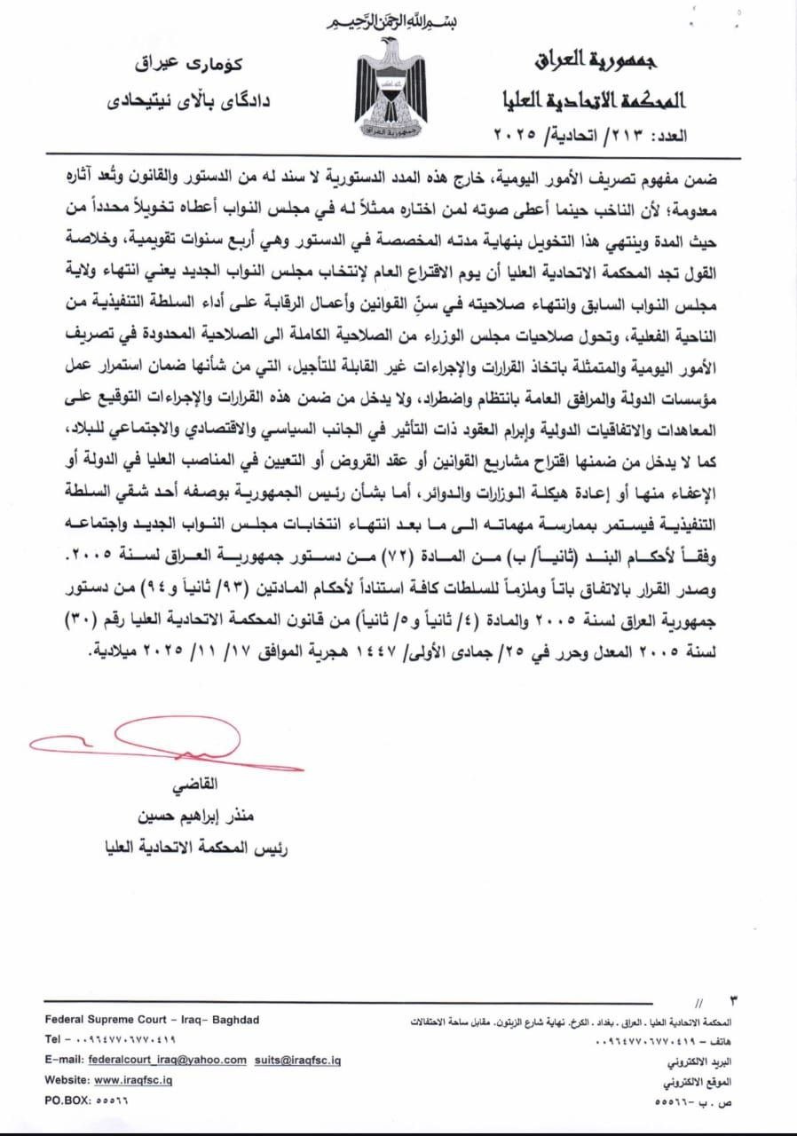 المحكمة الاتحادية تصدر قرارا بتحويل الحكومة الحالية إلى تصريف الأعمال